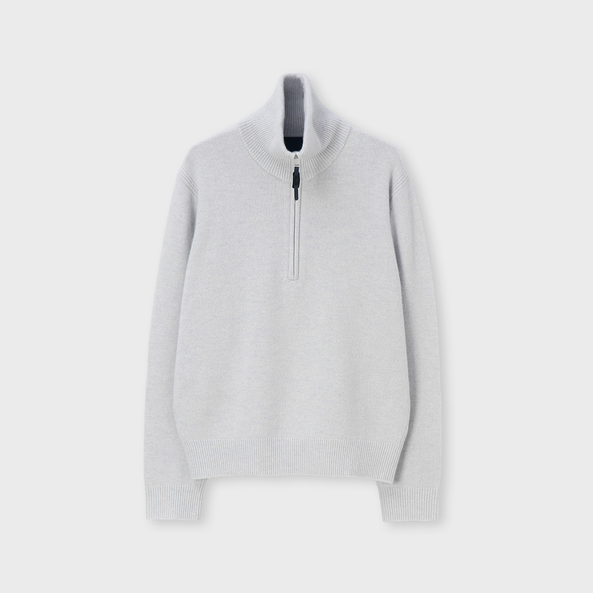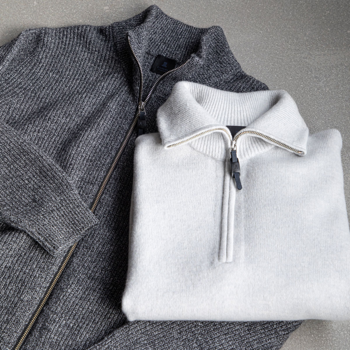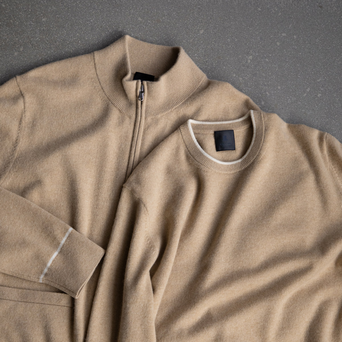 厳選したウルトラファインメリノウールを使用し、独自加工でふんわり軽く柔らかな風合いに仕上げたニット。ハーフジップとリブ編みジップアップを展開。上品なデザインとさりげないレザーアクセントが魅力。暖かく快適で、特別なギフトにぴったりの一枚です。
