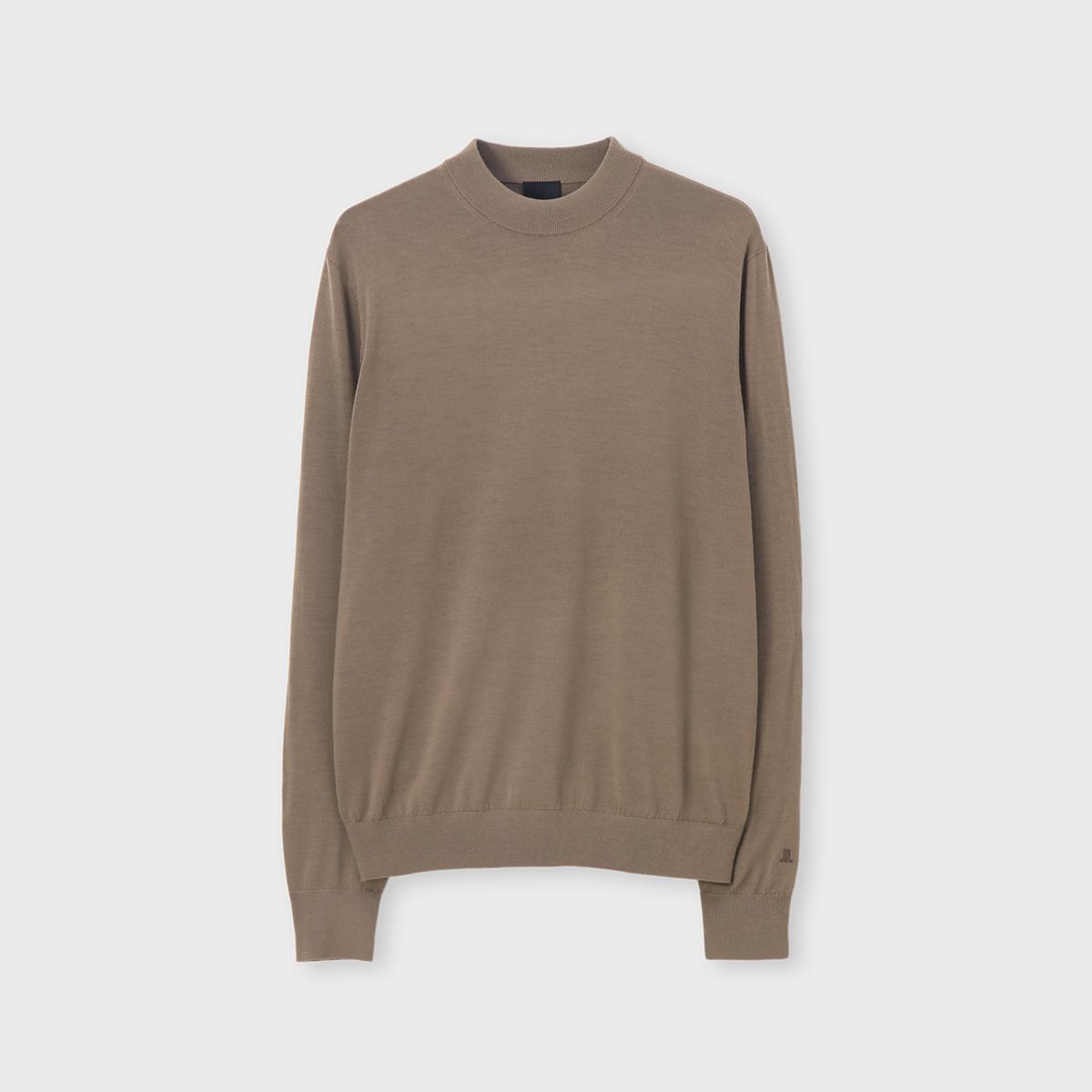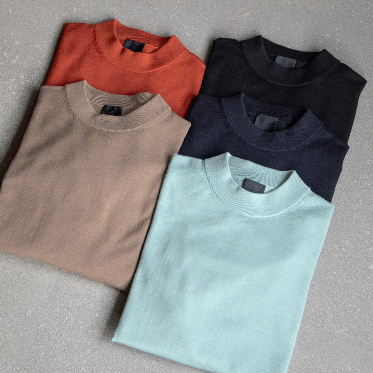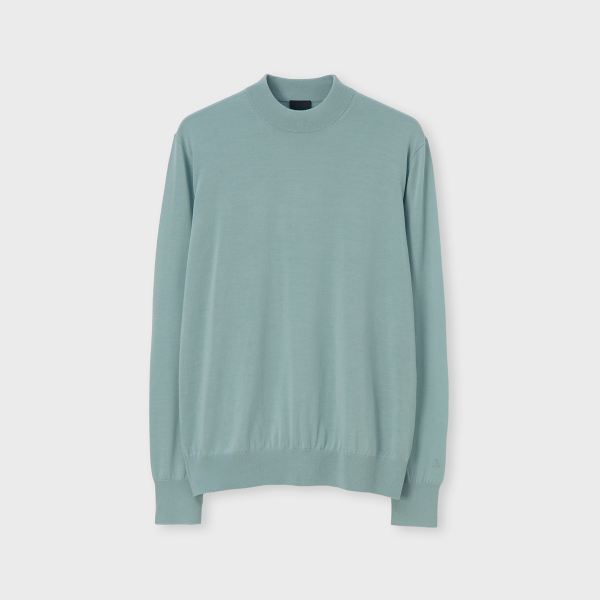 エクストラファインメリノウールを使ったハイネックネックニット。後身頃の袋編みや左袖のダブルJL刺繍がさりげないアクセントに。ベーシックカラーにアクセントカラーも加え、ジャケットのインナーにも映える一枚。