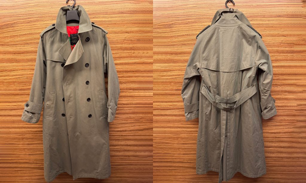 ある時、クリストファーのロンドンショールームに会いに行くと、彼はトレンチコートを折りたたんで、クッション代わりにその上に座っていた。「どうしたの?」と尋ねると、「こうやってくたびれさせているんですよ」。トレンチコートはピシッと着るよりは、ヨレヨレの風合いの方が渋い。僕もこれは真似しようと思った。