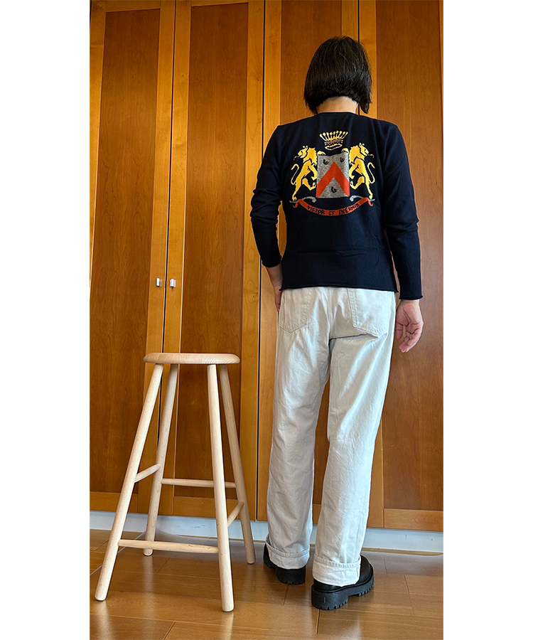 僕は、そんなセーターを見に行けるなんて、なんとラッキーなことだと感謝しながら、ドキドキしてそのアパルトマンの門をくぐった。確かオテル・ムーリスの並びあたりだったと思う。重々しいそのアパルトマンは、おそらく元は中世の貴族の住まい。現在の規格にはまったくあてはまらない窓枠やドア、そして石壁、木材、レリーフ等々、そのすべてが希少で格好良かった。ルシアン・ペラフィネの部屋へ入ると、畳まれたニットが所狭しと置かれていた。ルシアンは助手の女の子と在庫数を調べる作業をしていた。倉庫の棚卸しのような作業で、彼はややイラついていた。僕は不機嫌そうなルシアンを見ながら、「不味いタイミングで来ちゃったな」と思っていたが、一緒に行った友人はそんなことは気にせず、僕を紹介してくれた。ルシアンは友人にはしっかりとハグをかわして濃厚な挨拶をしたが、僕には興味なさそうにペラッとタッチのような握手をして離れた。まあ、ほぼスルーみたいな感じ。僕は恐縮しながらセーターを見せてもらった。柔らかい感触と温もりを備えるそのセーターは、さすが「カシミアニット界のロールスロイス」と言われるだけのものであった。そこにプリントTシャツの如きモチーフがインターシャで描かれていた。僕は画期的なセーターだと思い、試着を始めた。面白いモチーフが何十種類もあったので、たくさん試したのは山々だったが、挨拶時のルシアンの対応を考えると積極的にはなれない。試着してサイズ感の確認だけをすると、2枚のニットを「買いたいです」と助手に告げた。そして注文書の控えを頂いてその場を後にした。
