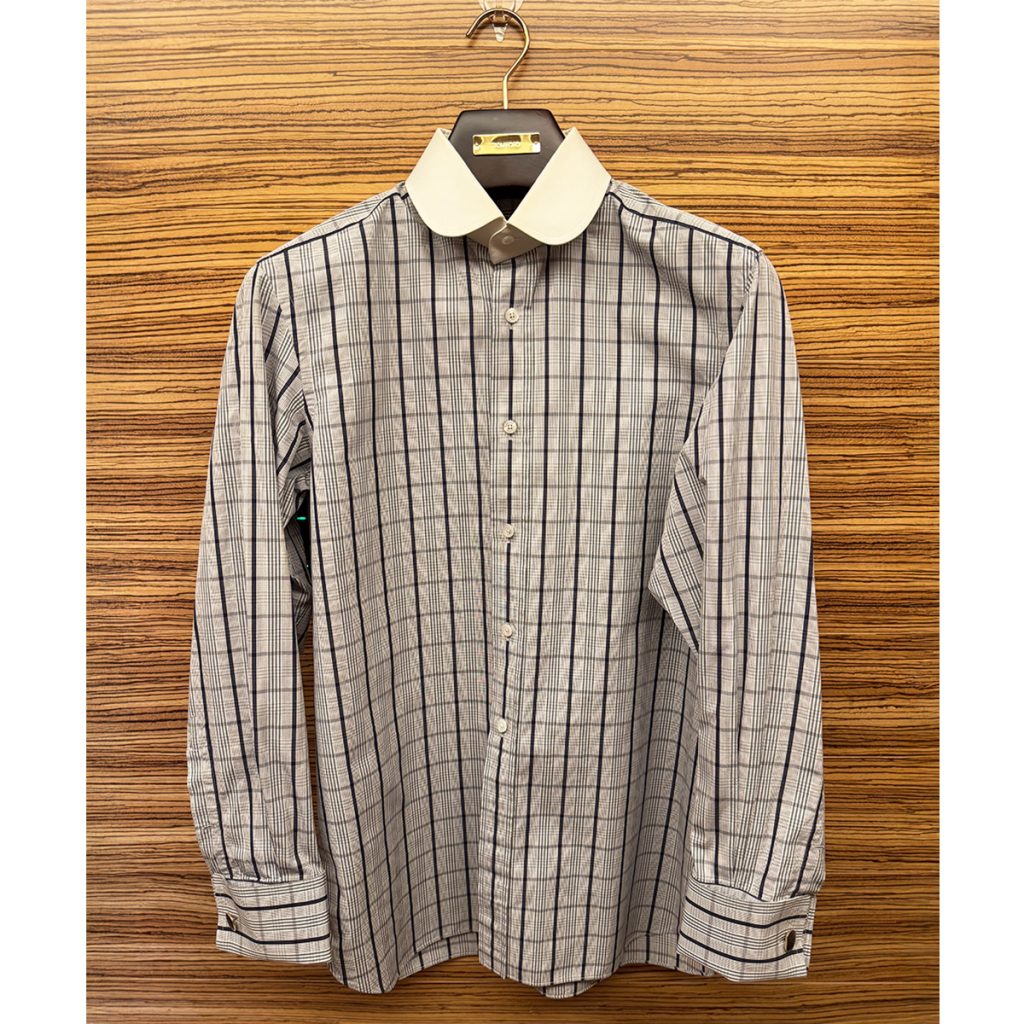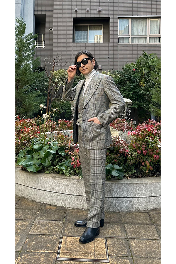 今回撮影したスーツは、今は無きマディソン・アベニューのTOM FORD1号店で作った2着目のスーツである。オープン当日に作ったスーツとは別な型の、よりTOM FORDらしいバッキンガムモデルというものにした。これはいわゆる日本人向きではないマッチョタイプのモデルで、どちらかというと背が高い人向きのモデル。僕はこれにトライした。1着目とは違ってラペルが大きく、ジャケットの存在感が強いので、個人的には膝から下があと10センチ長かったらなぁ、という思いだった。そんな悔しさを抱えながらも、完成してからかれこれ16年以上着ているのだから、結局は自分と折り合いをつけて、なんとか満足しているということなんだろうと思っている。理想とは違っているのだが(僕のボディが)、着続けていると次第に気に入ってくる。こんなケースは稀だが、これっていわゆる“オーダーメイドの魔力”のような気がする。この先も大事に着ていこうと思っている。