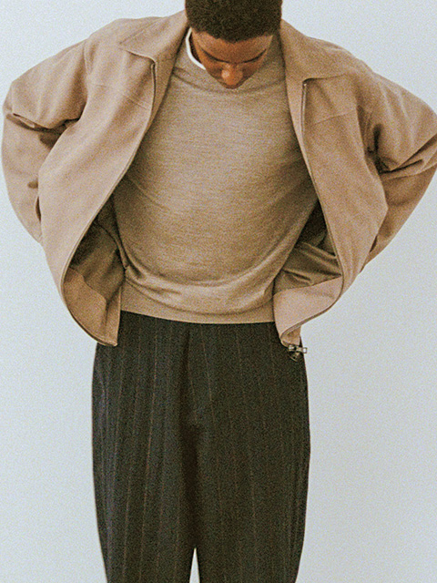 シンプルな衿付きのライダースタイプのショートブルゾン。通常よりも丁寧に時間をかけて鞣された、きめの細かいラムヌバックレザーを使用。シングルライダースをベースとした普遍的なデザインで、上質なモノを長く愛用したい方にぴったりなアイテムです。 ヌバックレザーブルゾン ¥297,000 (tax in)