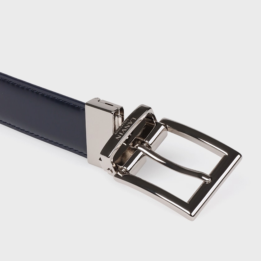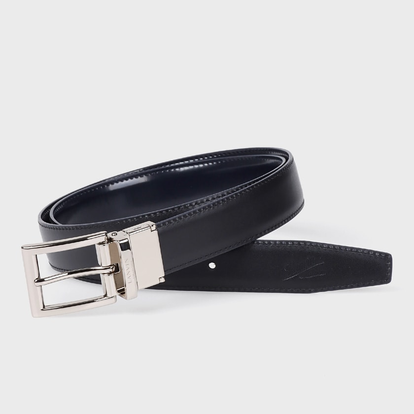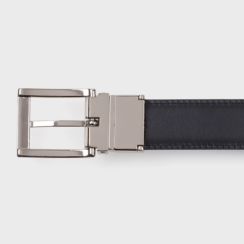 イタリアの鏡面レザーとスムースのコンビになったリバーシブルベルトは1本で2通りのコーディネイトが楽しめます。