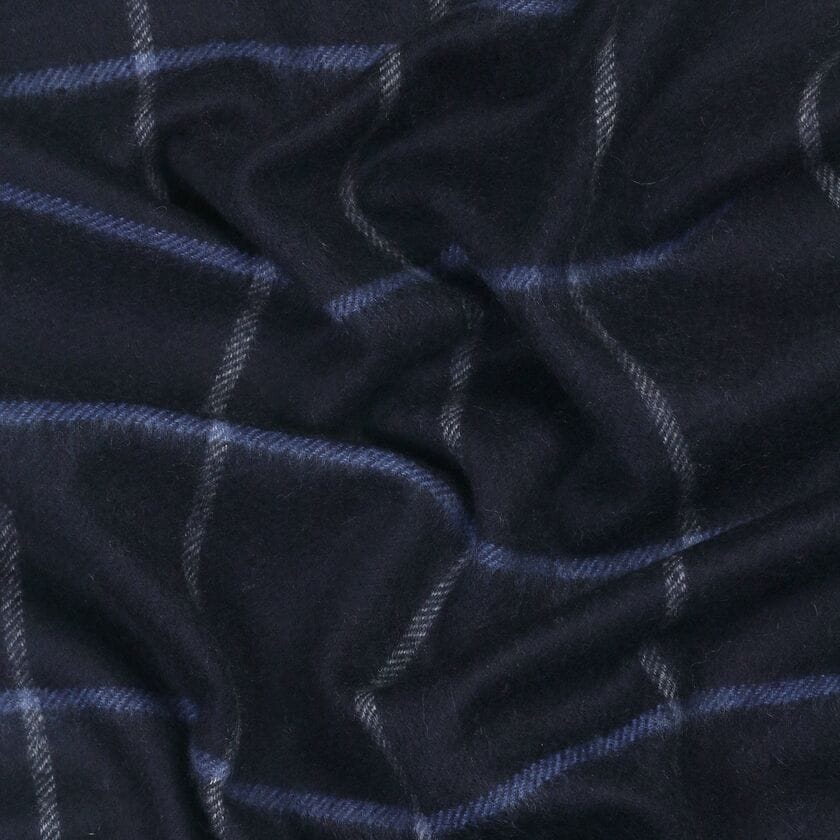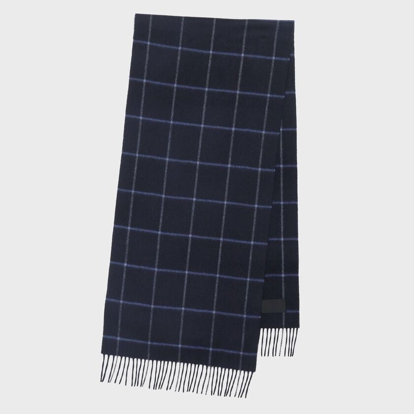シンプルな柄でもコーディネートに動きを与えるマフラーです。