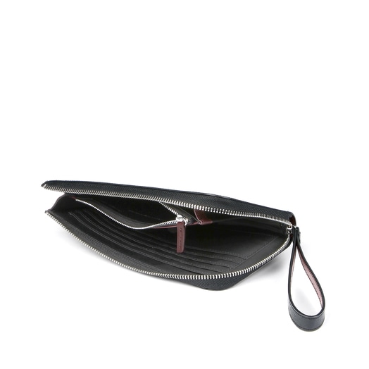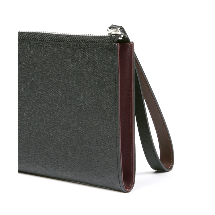 表素材には繊細な柄のエンボスレザーを使用し、ネイビー・ブラックともに内側の素材には美しいボルドーカラーに染め上げられたレザーをアクセントに使用。