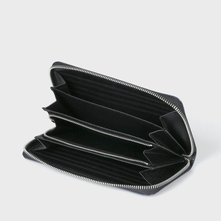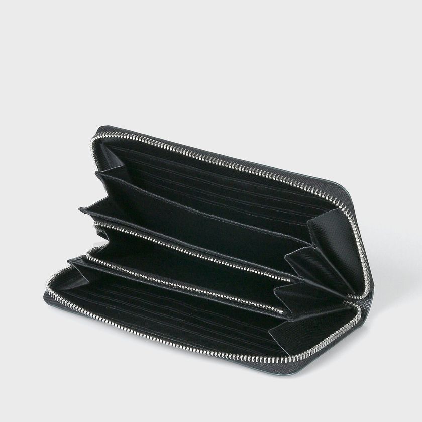口開きの良いラウンドファスナー長財布は視認性が高く必要なモノをスマートに取り出すことができます。