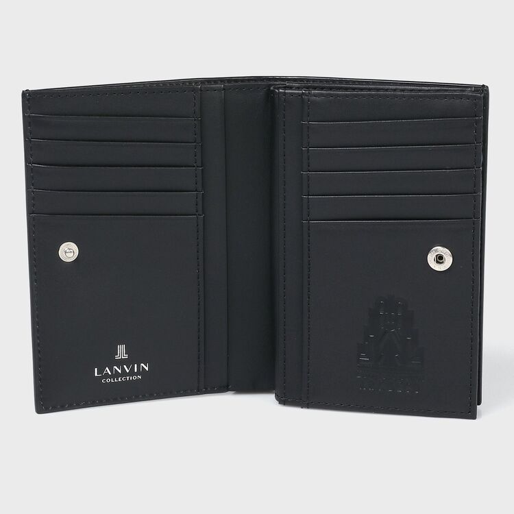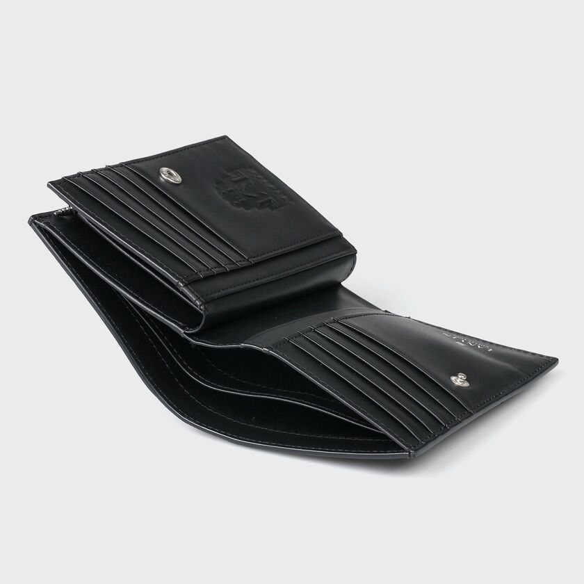 型押しのロゴマークがさりげないポイントにになっており、素材の高級感に加え、ミドルサイズの札入れで機能性もかねそなえています。