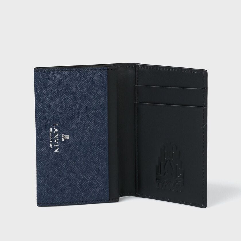 表の素材にはネイビーの繊細な柄のエンボスレザー、内装にブラックのスムースレザーを合わせ、すっきりとスタイリッシュな仕上がりになっています。