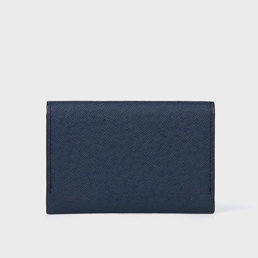 表の素材にはネイビーの繊細な柄のエンボスレザー、内装にブラックのスムースレザーを合わせ、すっきりとスタイリッシュな仕上がりになっています。