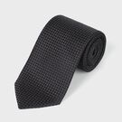 クラシックな連続柄のネクタイはレギュラー幅。落ち着いた合わせにちょうど良い表情です。
