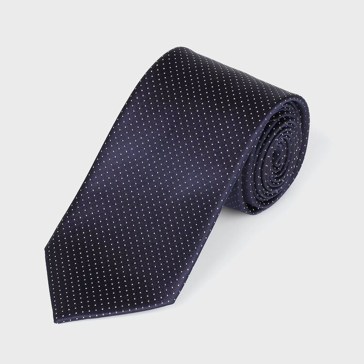 規則的に配されたピンドットがエレガントなネクタイです。無地感覚で合わせやすいところもおススメ。