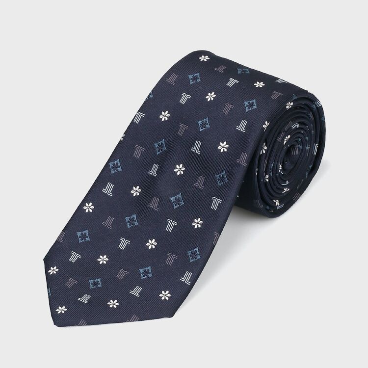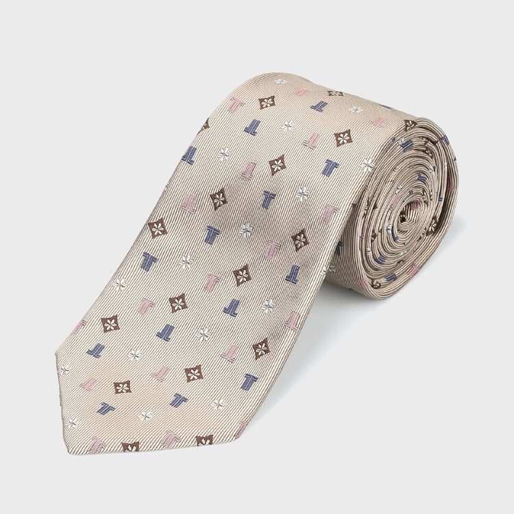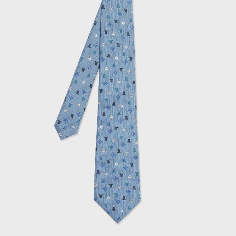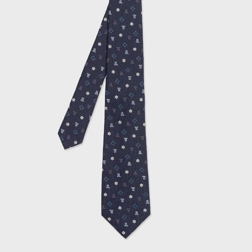 LANVINの象徴である「JLパターン」と、奥行きのあるグラデーションを組み合わせた、洗練されたナロータイです。
