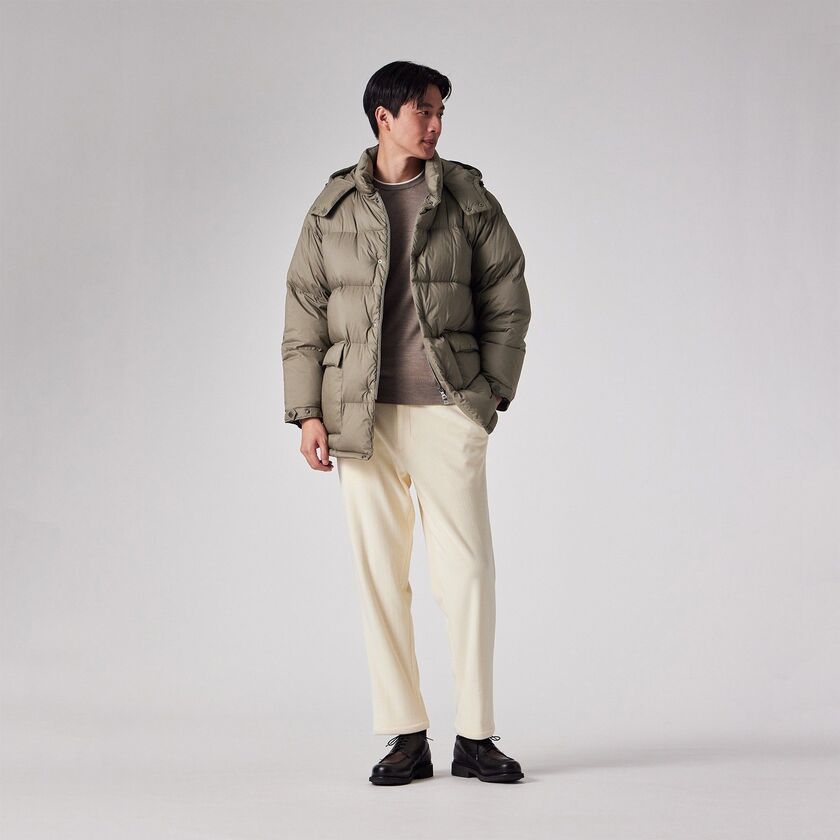 抜群の軽さと暖かさを両立した、タウンユースに最適なダウンジャケットです。オーバーサイズフィットで、街着として様々なシーンに対応でき、贅沢で暖かな着心地を日常で楽しむことができます。フードの着脱により、カジュアルからややキレイめなスタイルまで幅広く着回しが可能です。