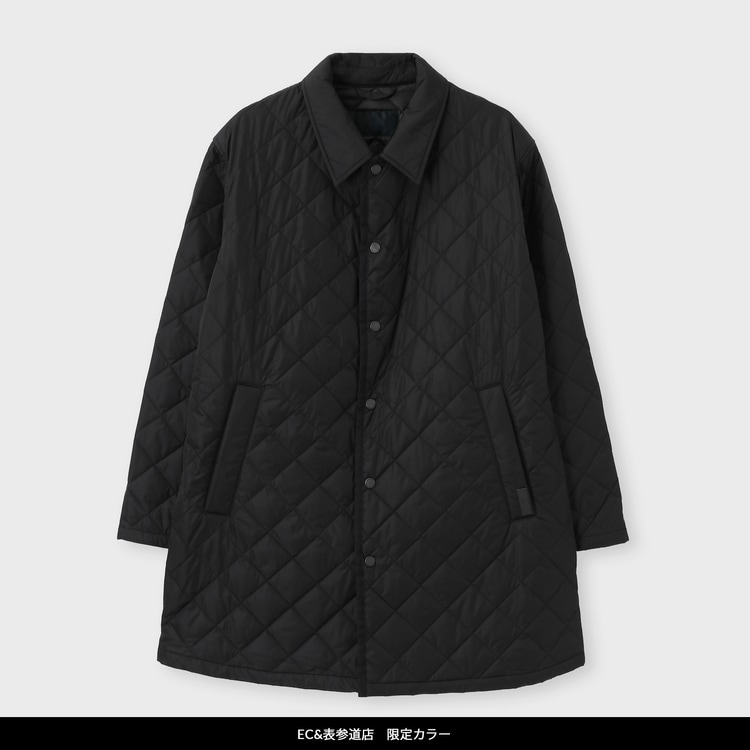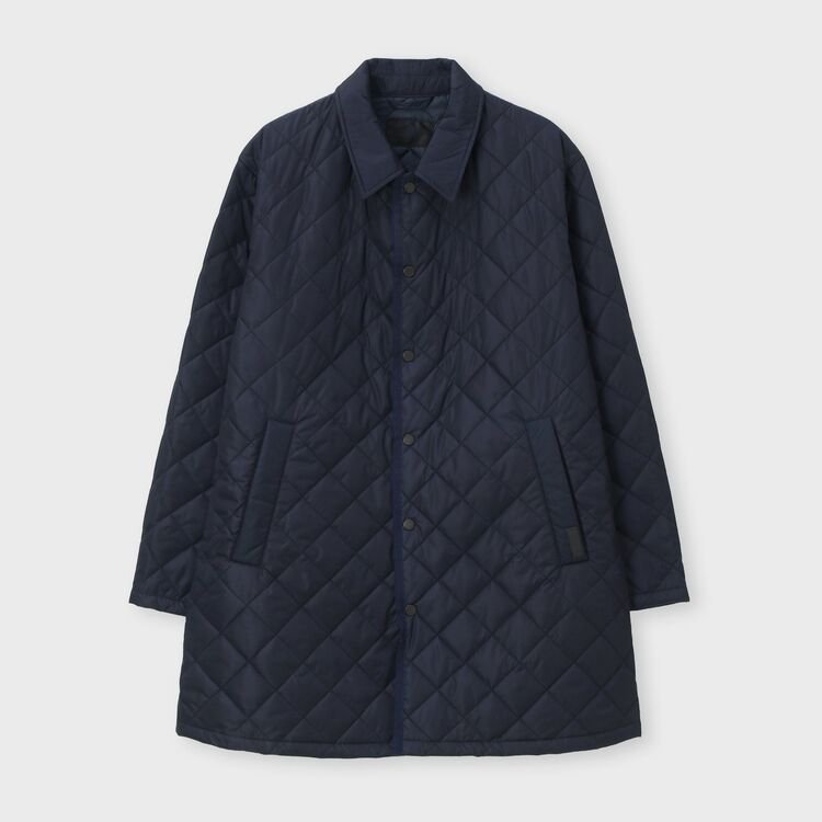 カジュアルユースでも、スーツの上からのビジネスユースでも重宝する中綿キルティングコート=L'oise(オワーズ)高機能中綿素材で有名なシンサレートを使用して、通常の中綿よりも軽く防寒性をアップさせています。