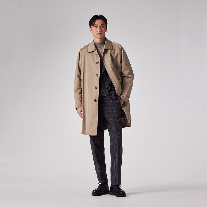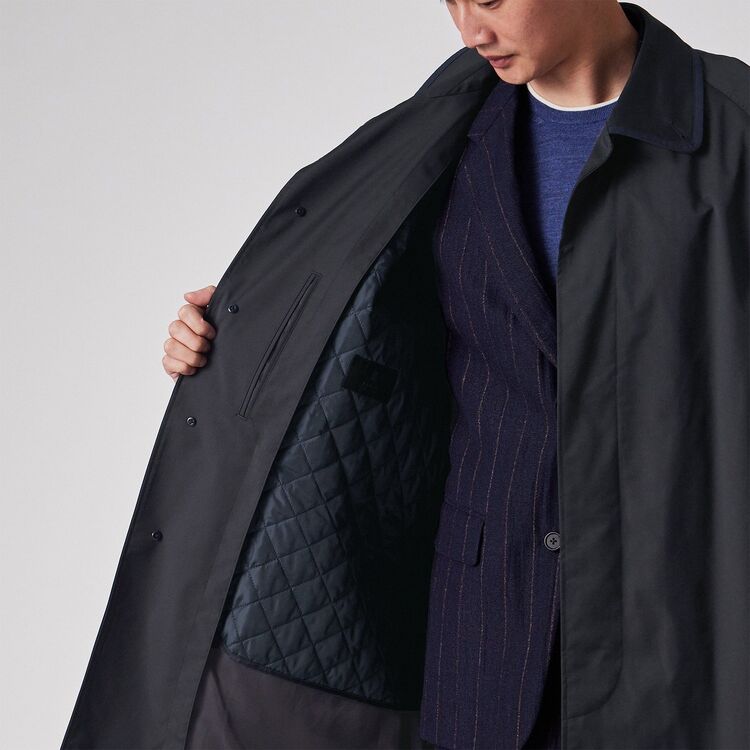 このコートは、非常に長いシーズンにわたって着用可能なユーティリティ性の高さが魅力です。キルトライニングを装着すれば、高い保温性により冬のメインアウターとして活躍します。一方、ライニングを取り外せば軽量なスプリングコートとしても使用でき、季節の変わり目から真冬まで対応可能です。そのクラシックなデザインと機能性から、ビジネスシーンでの通勤や出張、さらにはカジュアルなシーンまで、幅広くご使用いただけます。