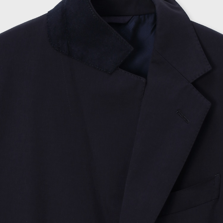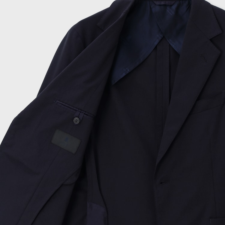 ポリエステル100%、ネイビー裏地:キュプラ、ライトグレー身頃裏地:ポリエステルキュプラ、袖裏地:キュプラ