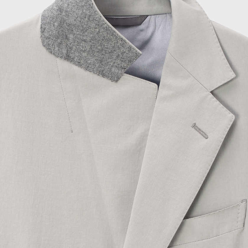 同素材のパンツと合わせたセットアップスタイルは、ビジネスシーンなどできちんとした印象を与えてくれます。また、パッチポケットのディテールが程よいカジュアルさを持っているため、単品のジャケットとしてもお使いいただけます。お手持ちのきれいめなパンツや、休日のリラックスしたパンツと合わせるなど、オンとオフの垣根を越えて幅広くご活用いただけます。