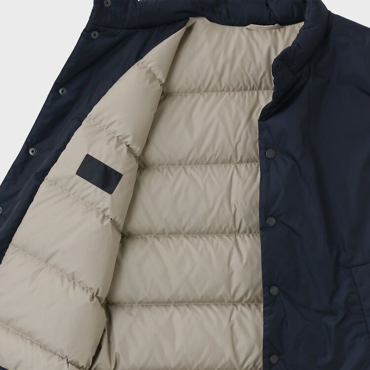 ・中わた: 上質なフレンチダックダウンを贅沢に使用。ダウン90%、フェザー10%の黄金比で、本格的な防寒にも対応できるフィルパワー730という高い保温性を誇ります。