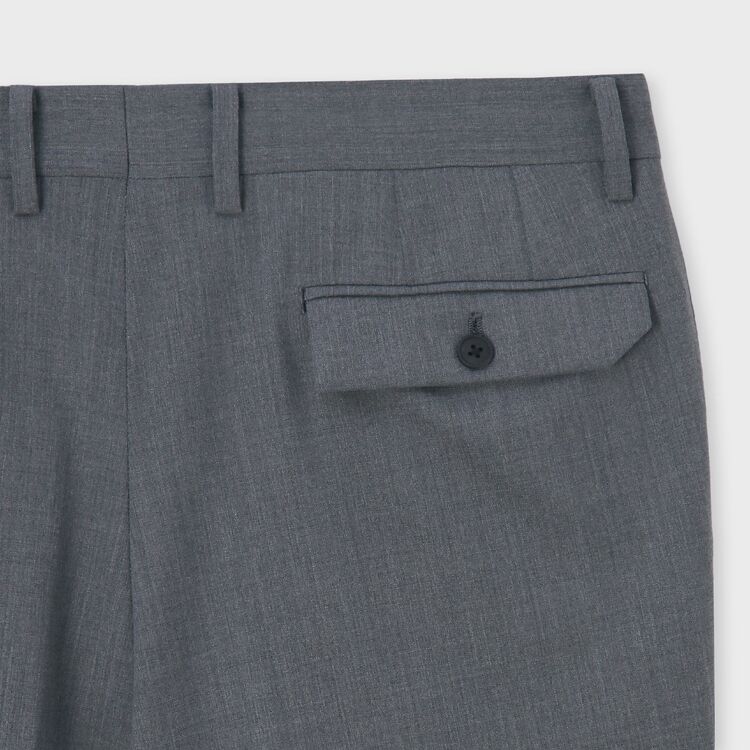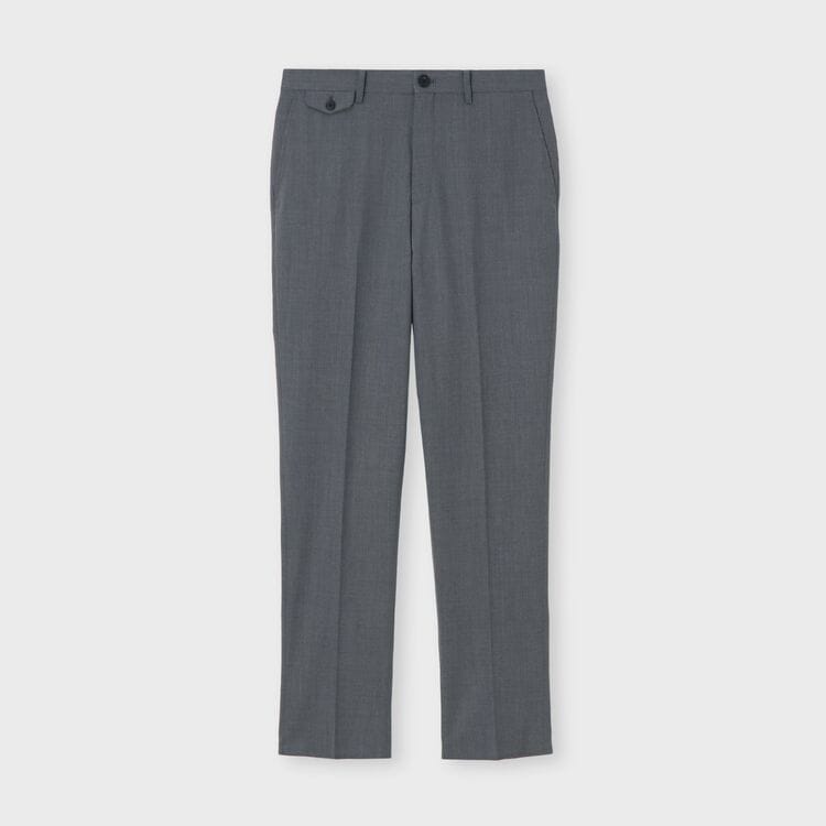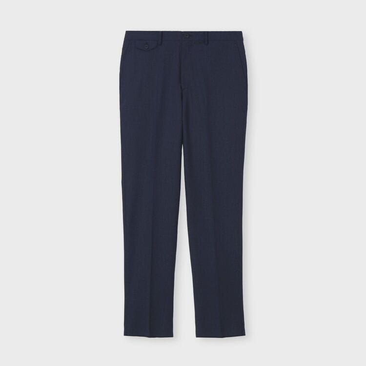 ジャケットスタイルのコーディネート用パンツとして最適で、ビジネスシーンや少し改まった場でも通用する品格があります。ディテールに特徴があるため、シャツやニットと合わせた単品使いでもシンプルになりすぎず、様になります。オンオフ問わず、一本持っておくとコーディネートの幅が広がる万能なパンツです。