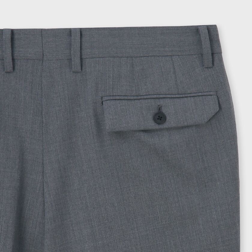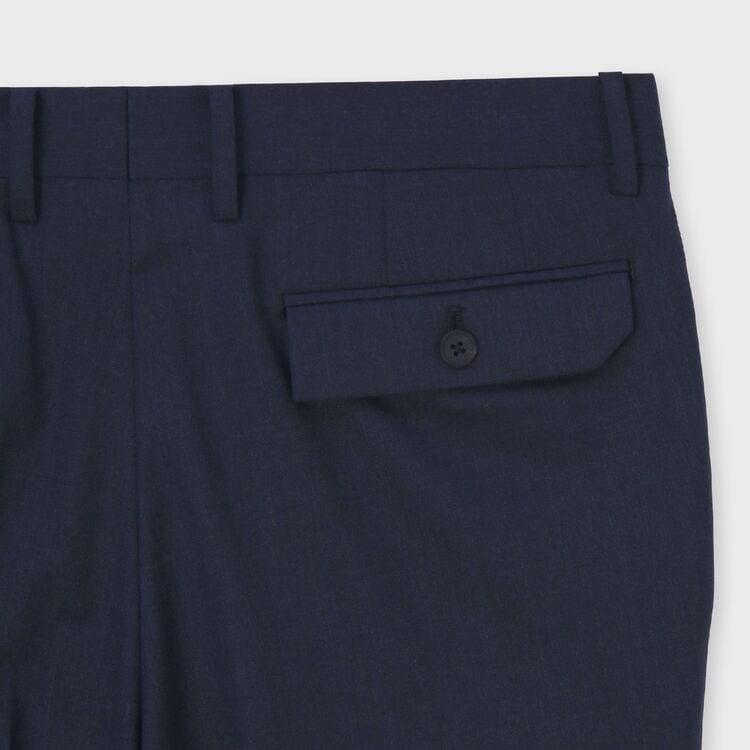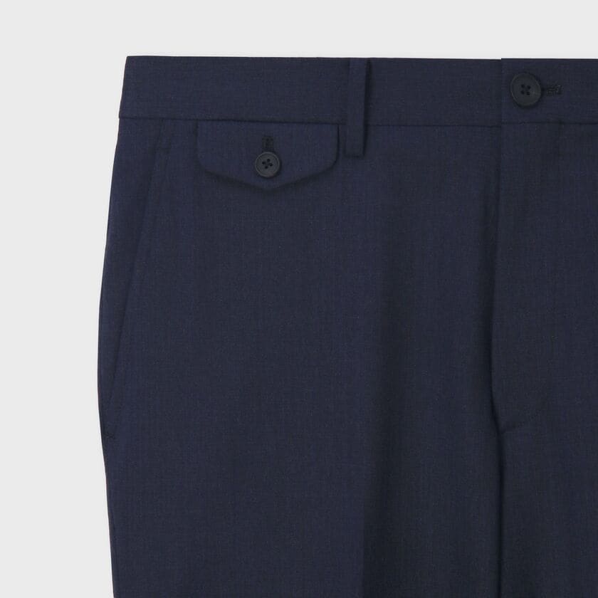 きれいなテーパードラインが際立つノータックパンツの新型モデル「Aveyron(アヴェロン)」です。フロントにはクラシックなフラップ付きのウォッチポケットを配し、トラディショナルなアクセントをプラス。バックスタイルの右ポケットには、ブランドらしい鋭角でモダンなカットのフラップを採用しており、クラシックとモダンが融合した遊び心のあるディテールが光ります。すっきりとしたシルエットで、脚を長く美しく見せる一本です。