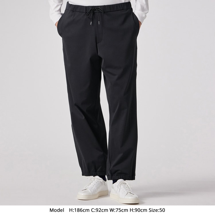最大の特徴である「ハイパワーストレッチ」により、縦横あらゆる方向に伸縮し、ストレスフリーな動きやすさを提供します。さらに、伸びた生地が戻る力(キックバック性)に優れているため、着用を重ねても膝が出にくく、美しいシルエットを長くキープできるのが魅力です。肌あたりは非常に滑らかで、シーズンレスで快適に着用いただけます。