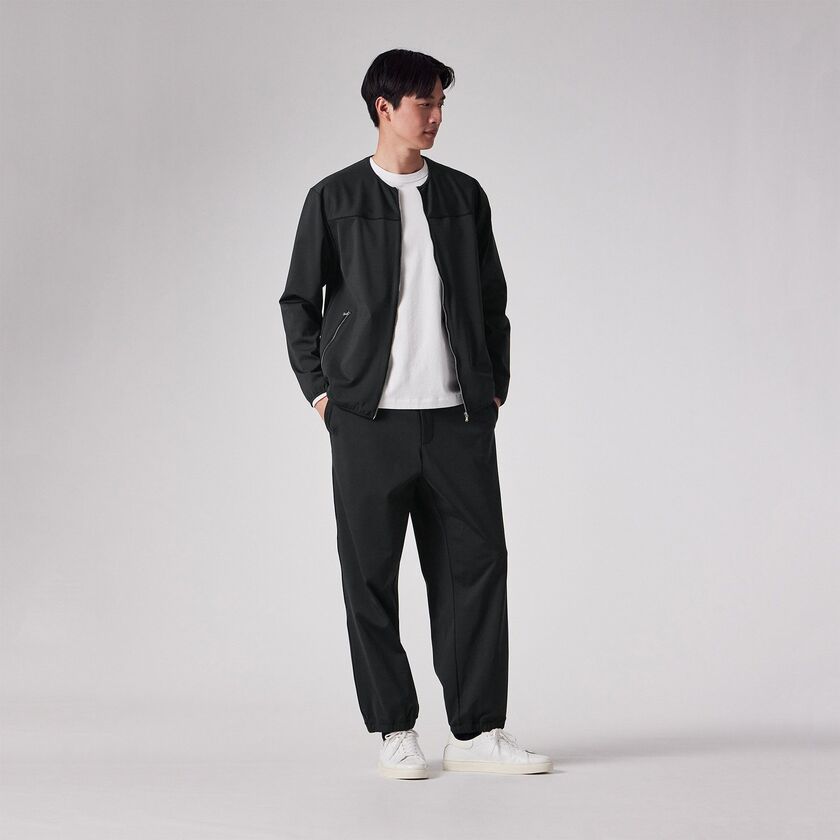 単品での着用はもちろん、タウンユースからアクティブなシーンまで幅広く活躍します。同素材で展開されている「ZIPアップブルゾン」や「クルーネックプルオーバー」とのセットアップスタイルが特にオススメで、合わせるだけで統一感のある都会的なスポーツミックススタイルが完成します。快適さと見た目の良さを両立させたい休日のスタイルに最適です。