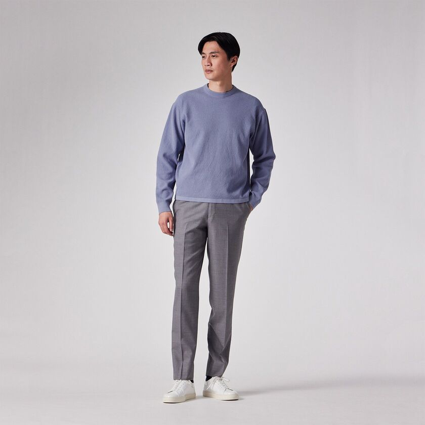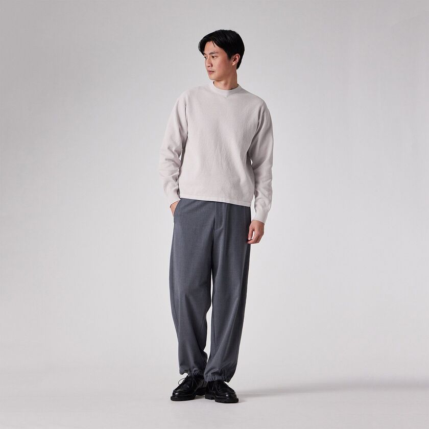 メインアイテムとして活躍するニットです。一枚でサラリと着ても様になり、デニムやチノパンと合わせたカジュアルスタイルから、スラックスと合わせたきれいめなスタイルまで幅広く対応します。スモーキーな色合いはコートやジャケットのインナーとしても映えるため、季節の変わり目のワードローブとして重宝する一着です。