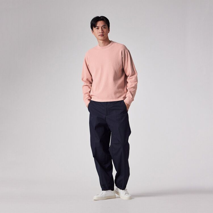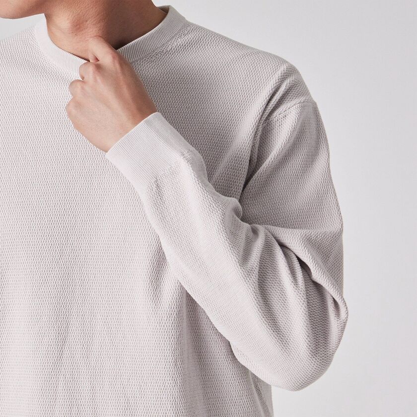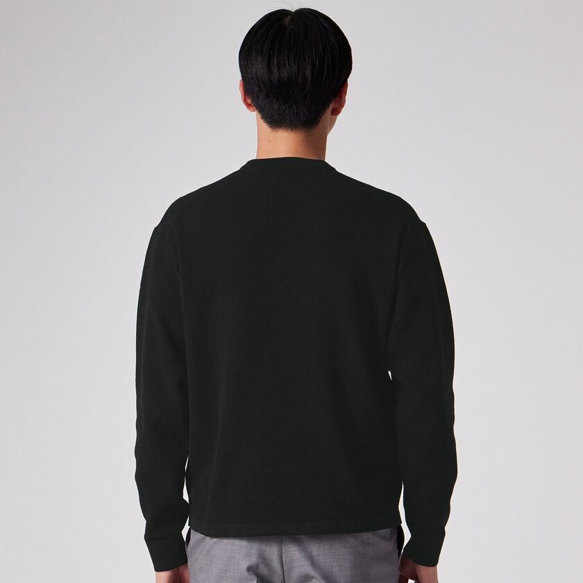 編み立ての際の度目(密度)をあえて緩く調整することで、凹凸のある組織でありながら、ふっくらとしたソフトな肌触りを実現しています。ピケ編み特有の肌離れの良さと通気性を持ち合わせているため、気温の変化がある時期でも蒸れにくく、快適な着心地をキープします。「今の気分にフィットする」とある通り、締め付け感のない優しい着用感が魅力です。