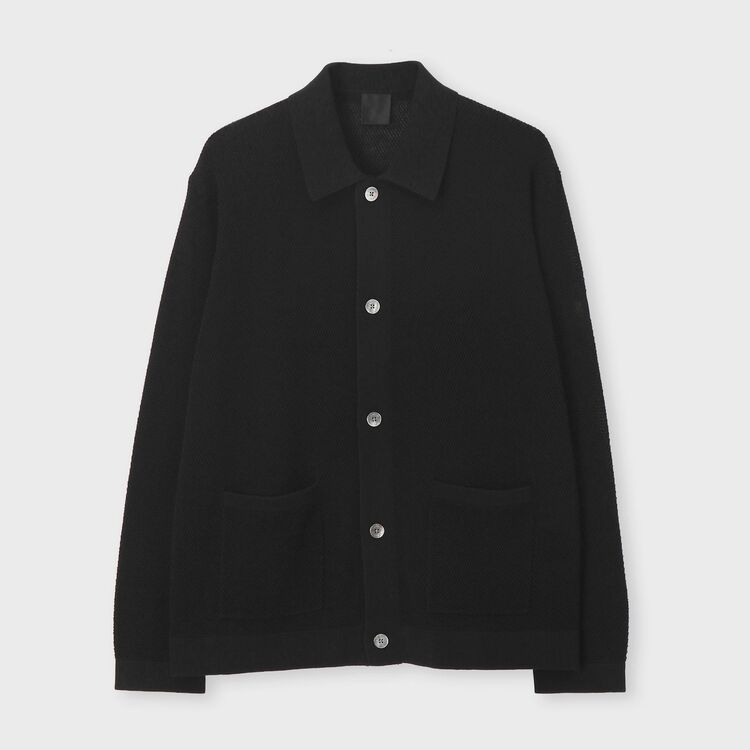 シャツのような「衿(えり)」が付いた、きちんと感のあるカーディガンです。フロントにはブランドロゴが刻まれた上品な貝ボタンを使用しています。また、左袖にはひし形の枠内にさりげなくワンポイントの刺繍があしらわれているデザインです。腰まわりの2つのポケットも便利なアクセントになっています。