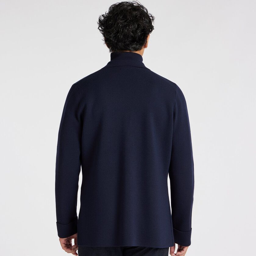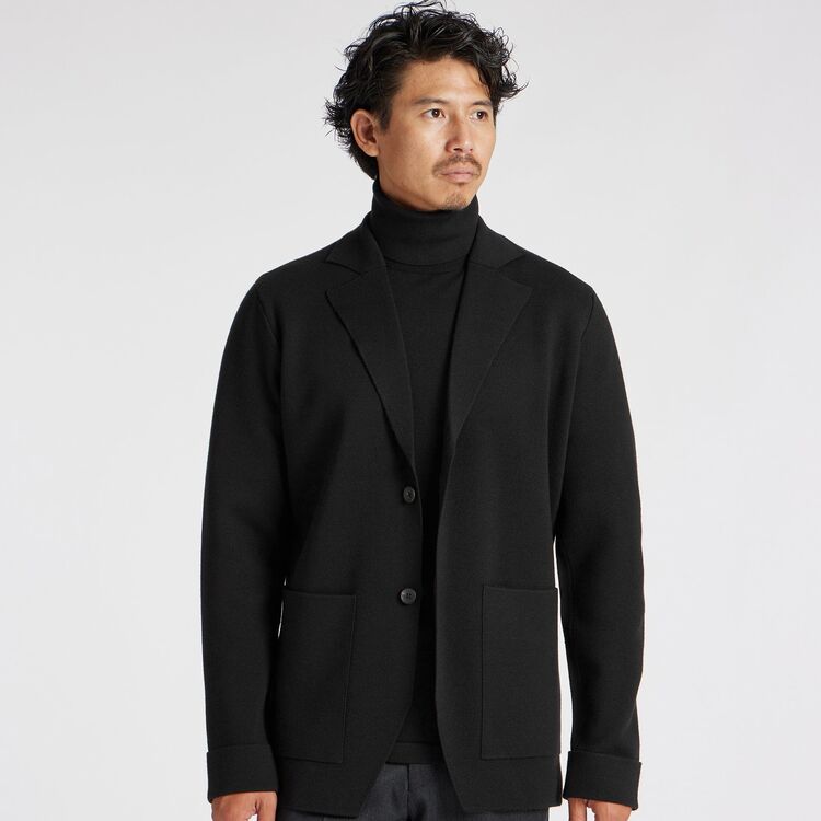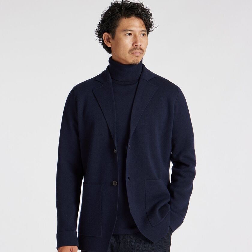 SUPER140'sという極細糸をミラノリブにした、カシミヤライクな素材感で作られたニットジャケットはエレガントな表情、すっきりとしたスタイルを演出します。