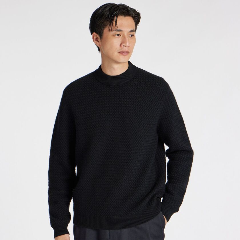 今シーズン、LCM人気のリヴィエラ編みニットは首元をエレガントに覆うモックネックデザイン。