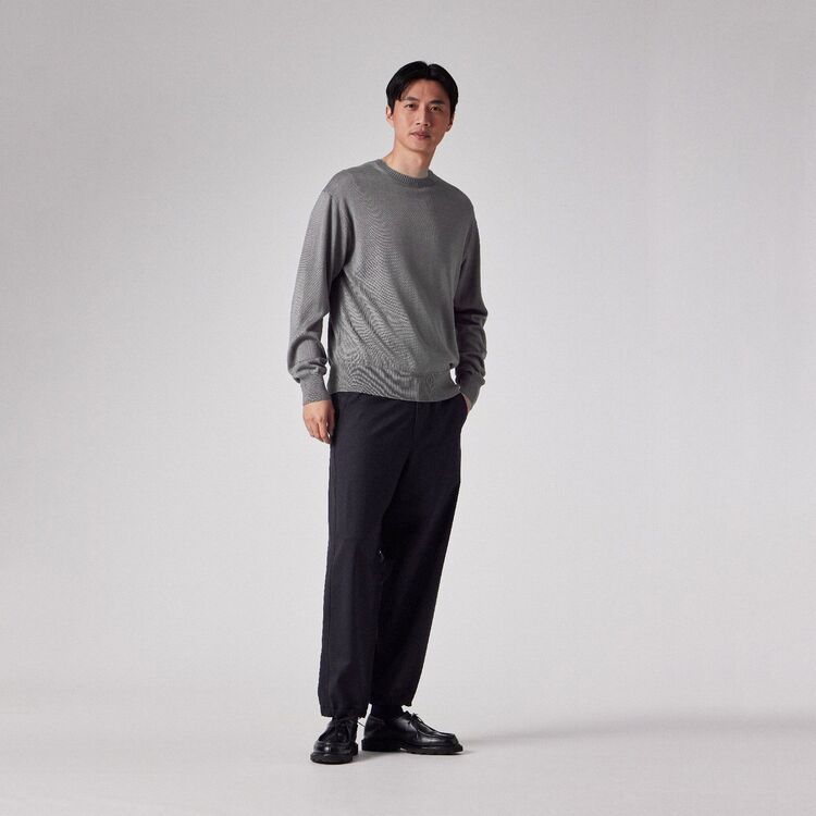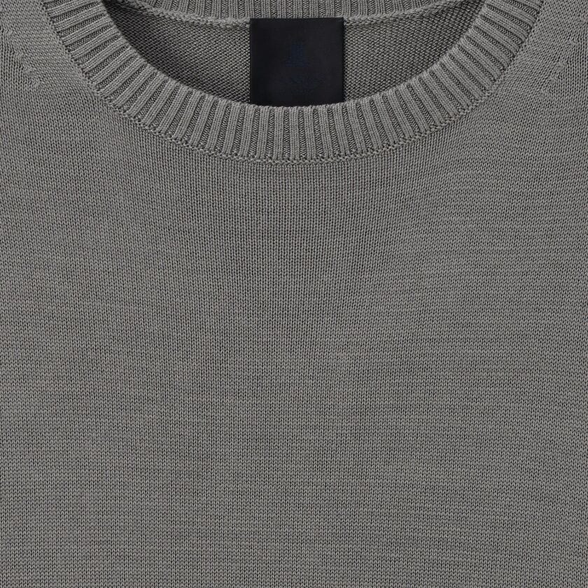 【SOMMAREL/ソマレル】は、装飾を削ぎ落としたミニマルなクルーネックプルオーバーです。本来ハイゲージに使用される繊細な糸をあえて3本取りにしてミドルゲージに編み立てることで、肉厚すぎず薄すぎない絶妙なバランスを実現しました。目面の整った美しい編み地、シルク特有の上品な光沢、そして身体の動きに合わせて揺れるしなやかなドレープ感が、シンプルながらも圧倒的な存在感を放ちます。