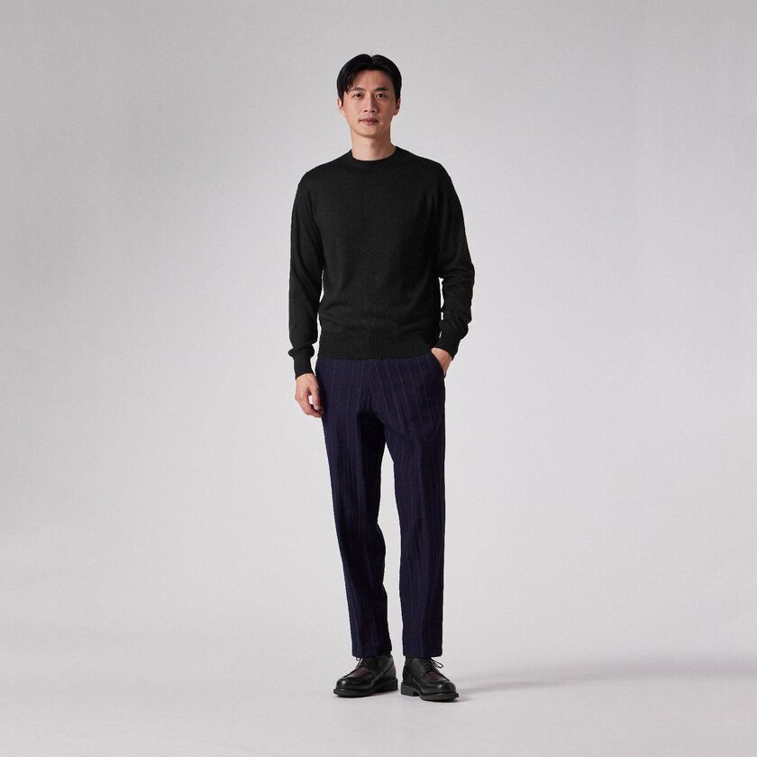 デニムやスラックスと合わせたシンプルなワンツーコーデでも、その素材感によりいつもの着こなしをさり気なくクラスアップしてくれます。ジャケットやコートのインナーとしてはもちろん、春先や秋口には一枚で主役としても活躍。オン・オフ問わず、上質な大人の日常着として長く愛用いただける一着です。