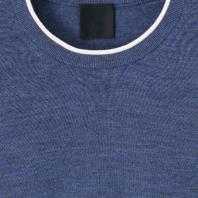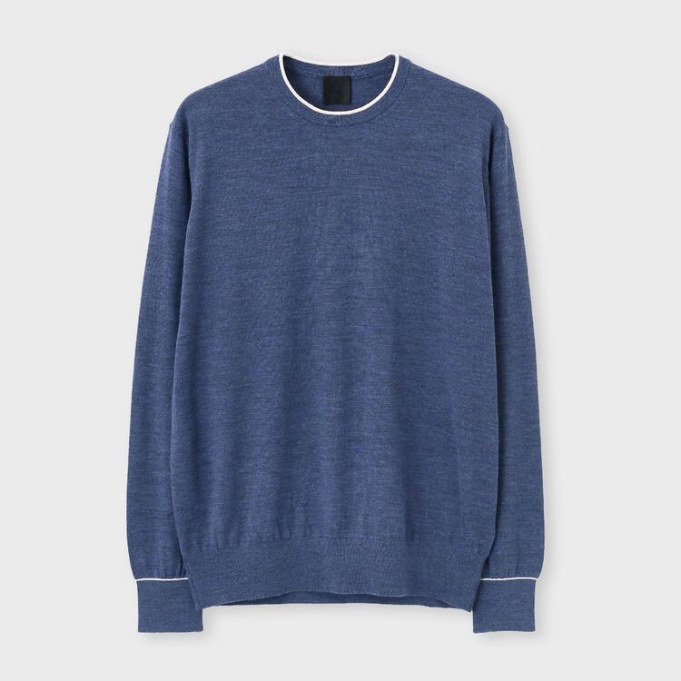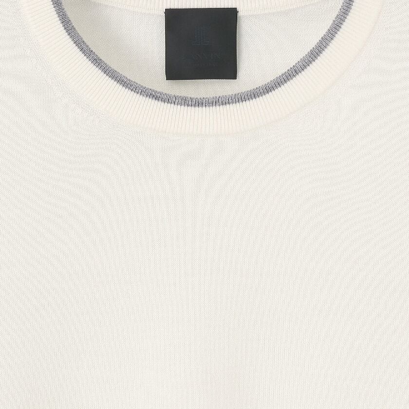 衿ぐりに配色ラインを効かせて、Tシャツをレイヤードしているようなさり気ないトロンプルイユデザインなので、1枚で着ても様になります。