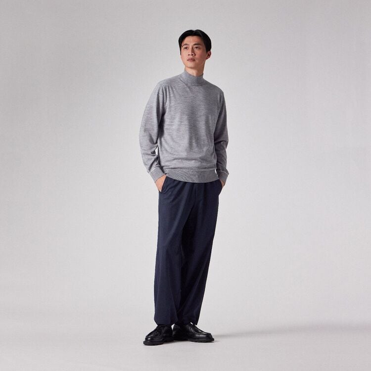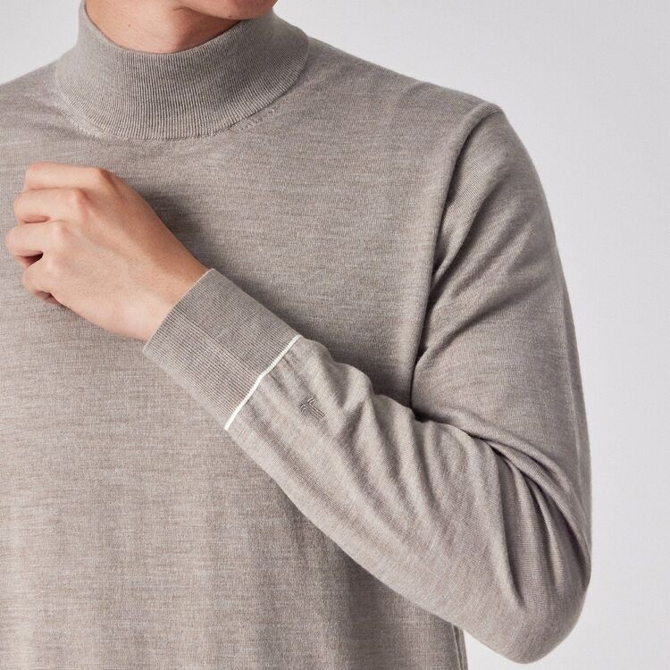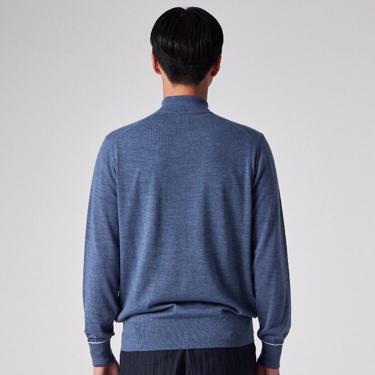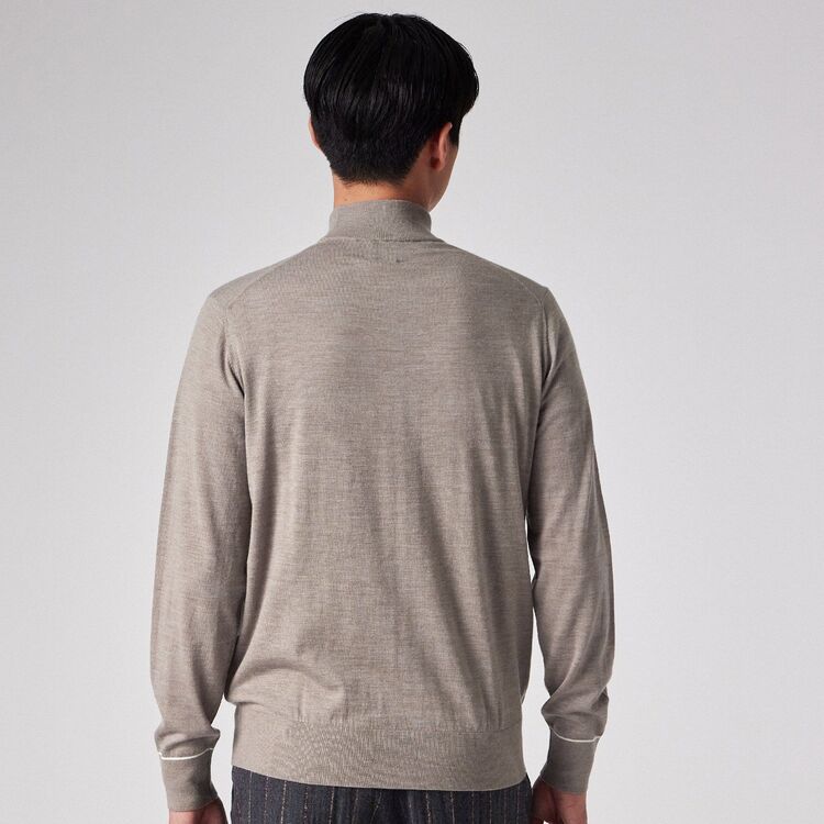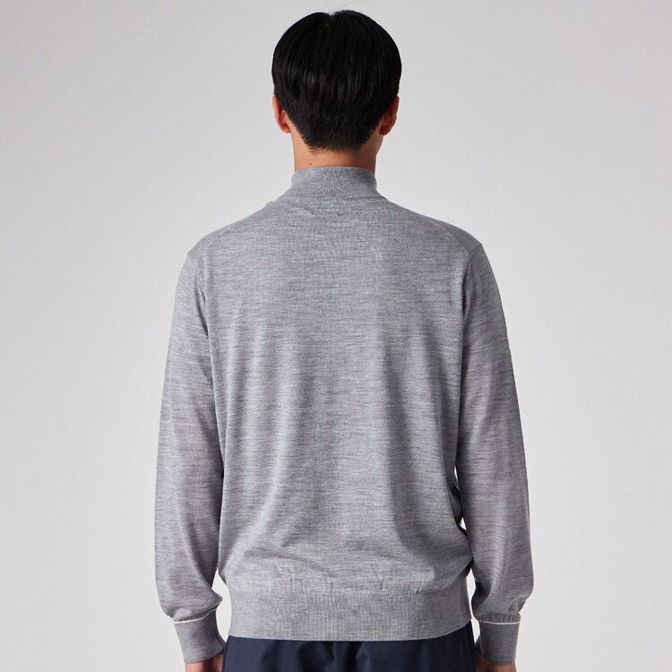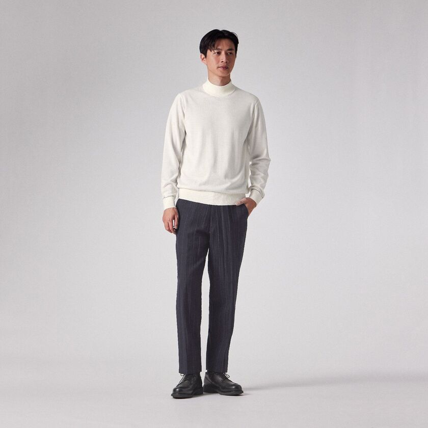 ソフトで繊細な糸を丁寧にハイゲージで編み上げているため、生地の厚みが抑えられており、すっきりとした着用感を実現しています。首周りの窮屈さもなく、ジャケットの中に着ても着膨れしません。動きやすさとシルエットの美しさを両立し、一日中快適にお過ごしいただけます。