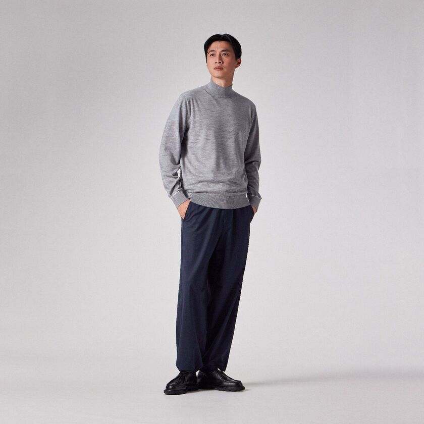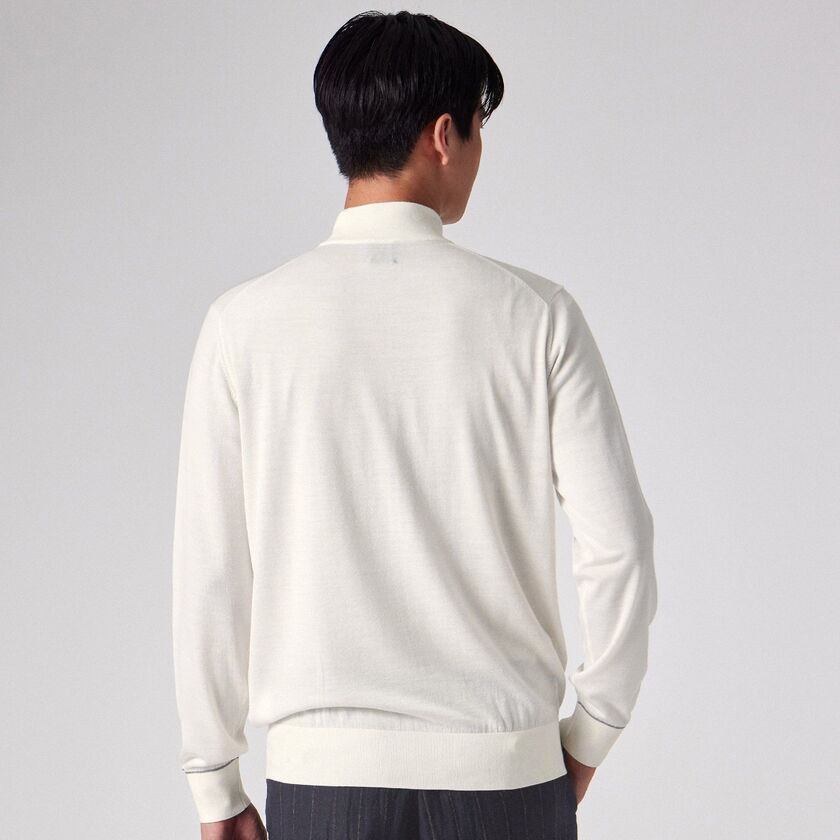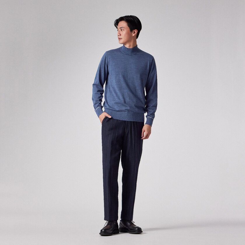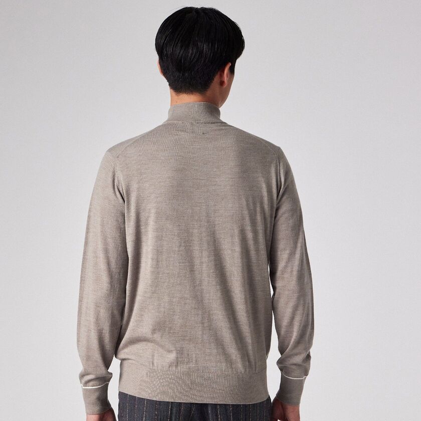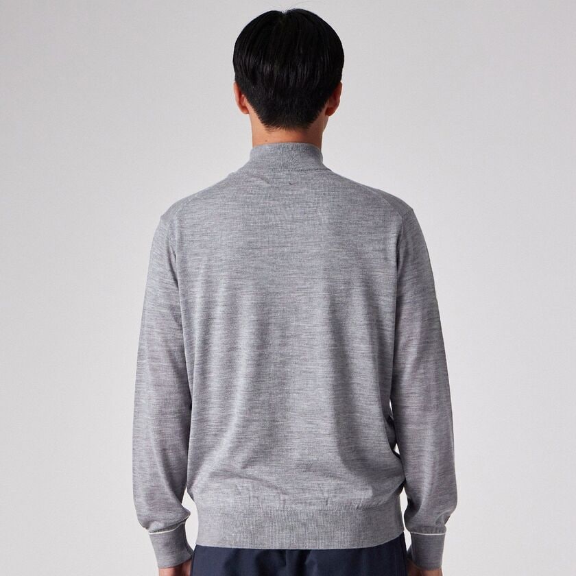 どこかドレス感のある上品な佇まいは、ビジネスシーンにおけるジャケットのインナーとして最適です。シャツのようなきちんと感とニットのリラックス感を兼ね備えているため、オフィスカジュアルから休日のきれいめスタイルまで、大人の装いを格上げするキーアイテムとして推奨いたします。