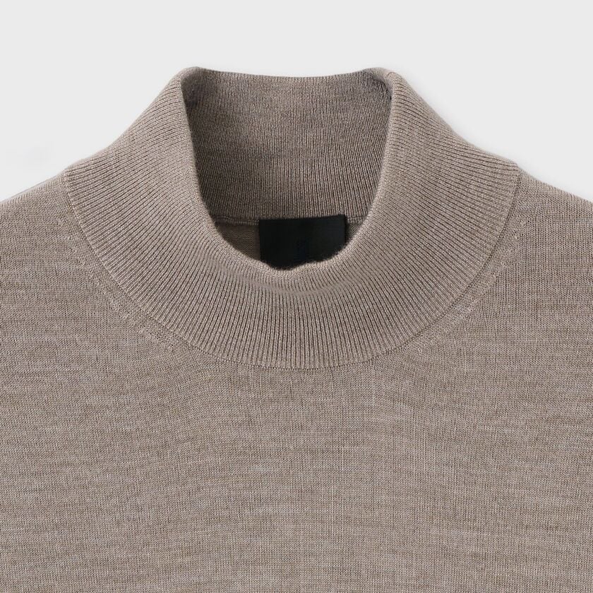 【CAMPBIEIL/カンビエイユ】と名付けられた、プレーンなハイネックプルオーバーです。最大の特徴はこだわりのネックライン。タートルネックのような首元のもたつきを抑えつつ、一般的なモックネックよりも少し高めに設定することで、よりエレガントで洗練された印象を追求しました。ミニマルながらも計算されたバランスが魅力です。