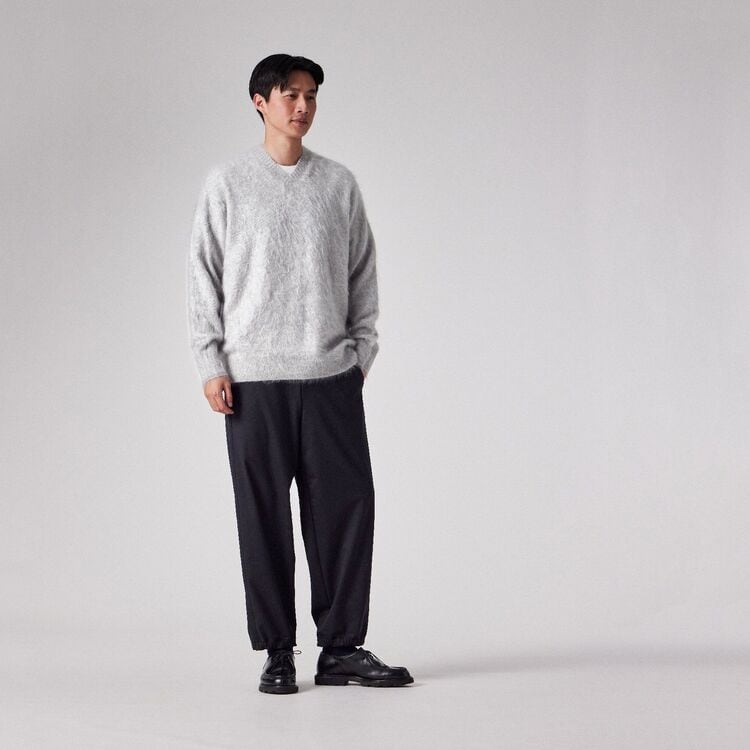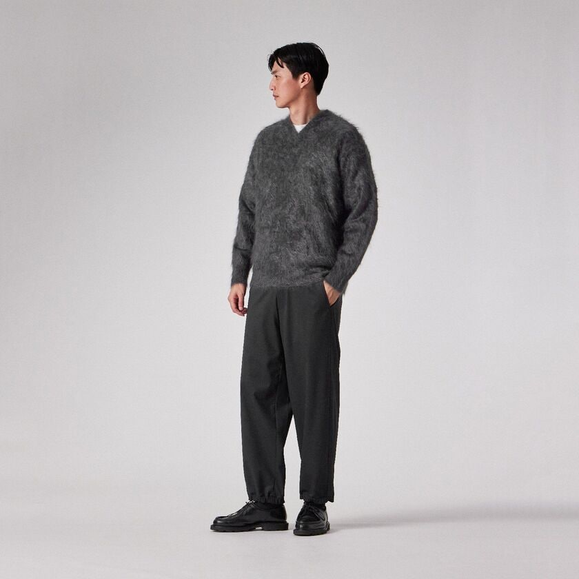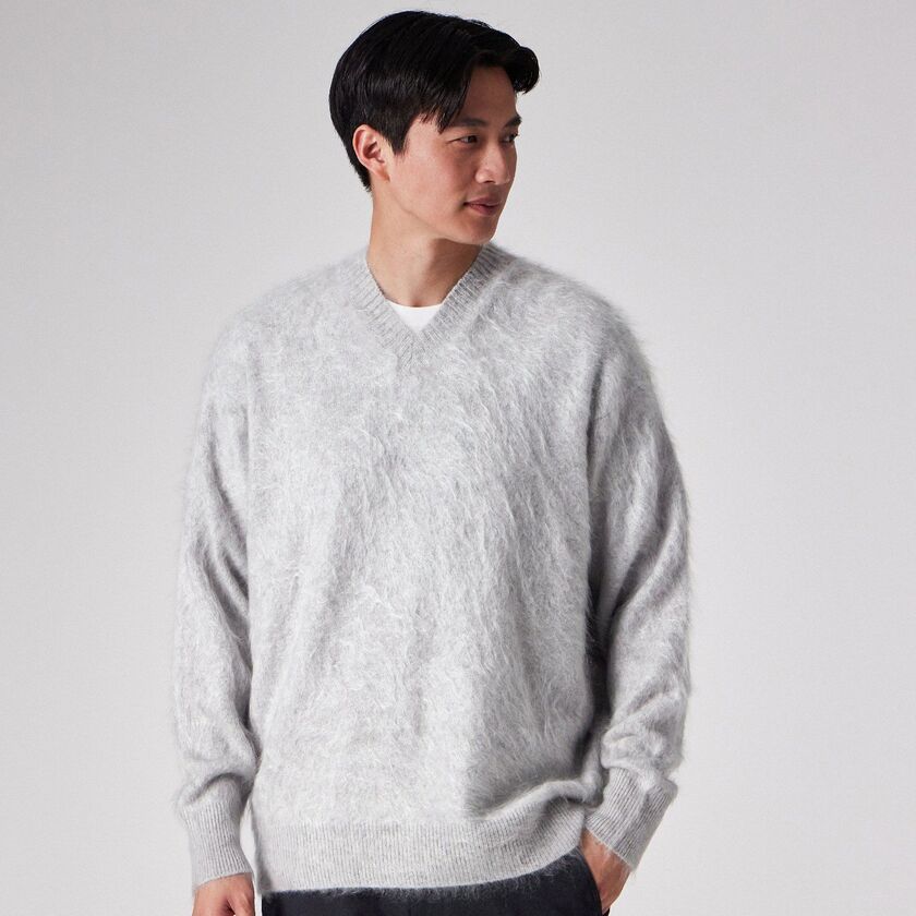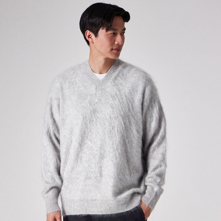 【Tsanteleina/ゾントレーナ】は、深すぎず鋭角的なラインを描く「ナローVネック」が特徴のプルオーバーです。首元をすっきりとシャープに見せつつ、素材の持つ圧倒的なボリューム感との対比で、モダンで洗練された印象を与えます。サイズ展開をあえて「フリーサイズ」のみとすることで、着用する人の体型に合わせてカシミヤが優しく馴染み、リラックスしたドレープと落ち感を楽しめる設計となっています。