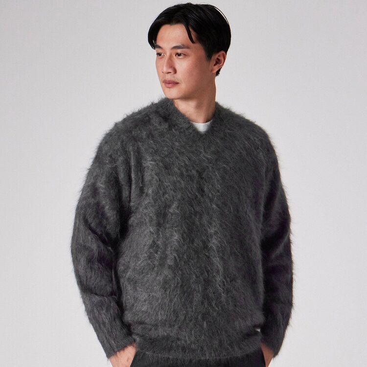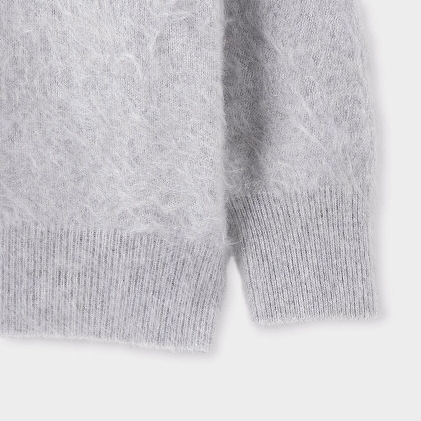 繊維を無理に掻き出していないため、素肌に触れてもチクチク感が極めて少なく、カシミヤ本来のしっとりとした滑らかさをダイレクトに感じていただけます。また、ファーのように立ち上がった毛足が多くの空気を含み、断熱層を作るため、見た目の軽やかさからは想像できないほどの高い保温性を発揮します。