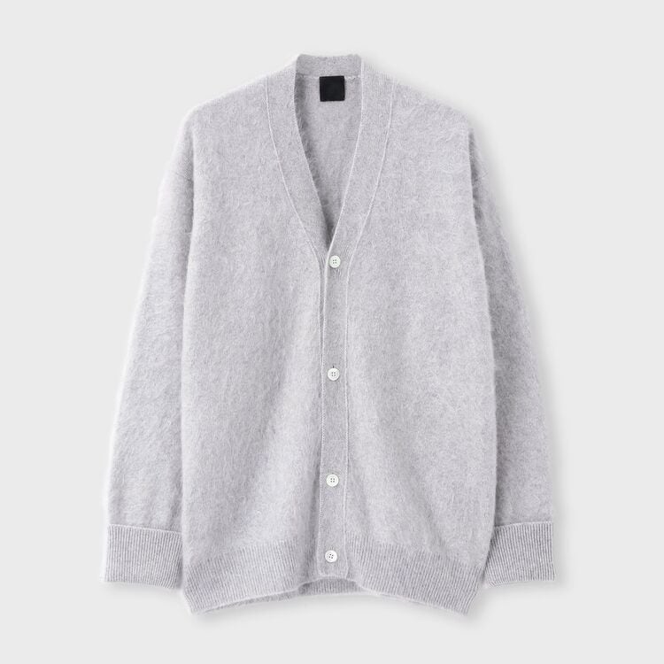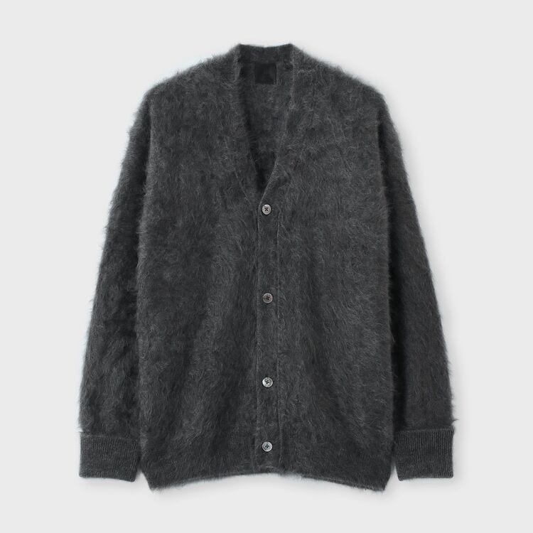 【Étale/エタル】は、カシミヤファーの圧倒的な素材感を活かしたVネックカーディガンです。サイズ展開を「フリーサイズ」のみとすることで、どのような体型の方が羽織っても、素材の重みで自然な落ち感が生まれ、身体を優しく包み込むリラックスシルエットが完成します。フロントには素材のボリュームに負けない存在感のあるボタンを配し、前を開けても閉めても様になるバランスに設計。シンプルながらも素材の陰影が美しく、ラグジュアリーな空気を纏った一着です。