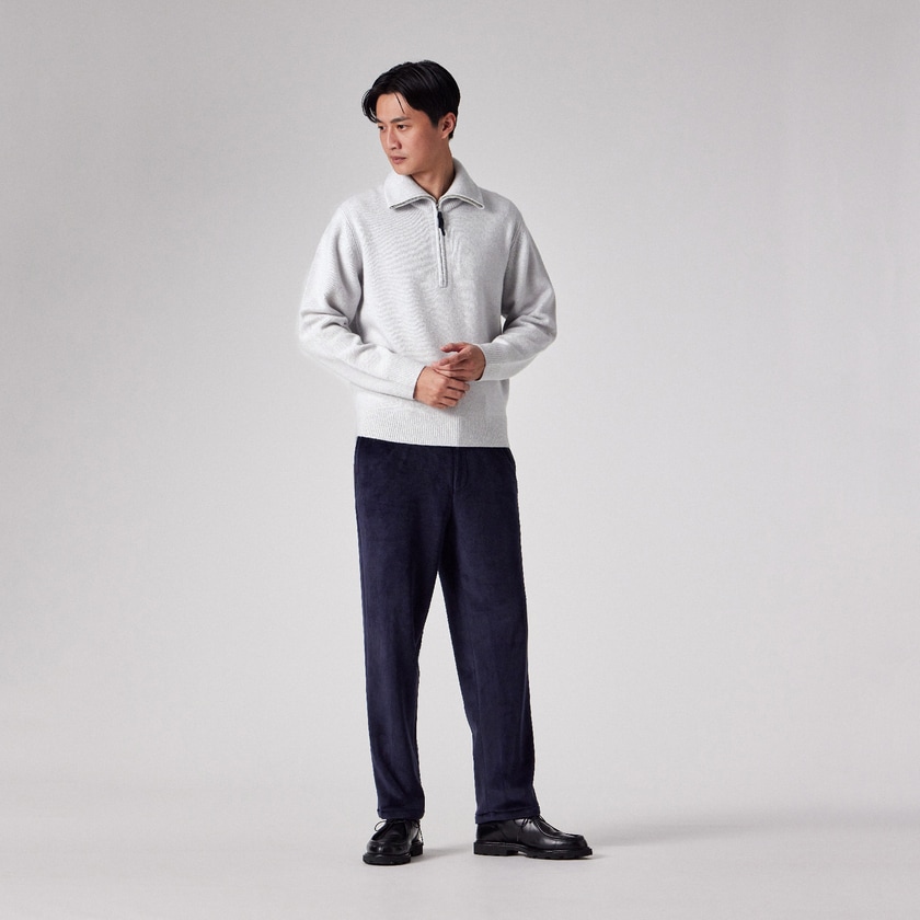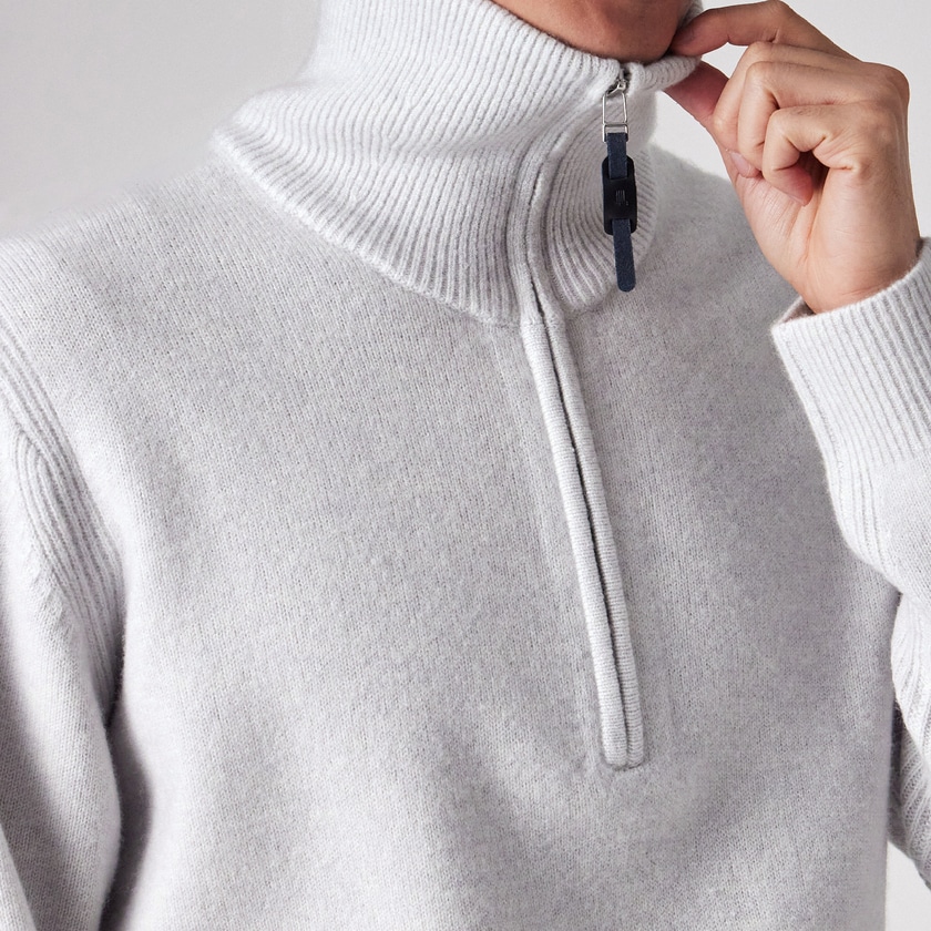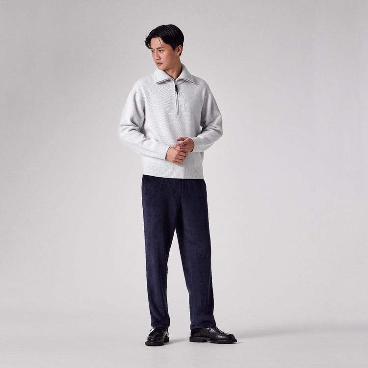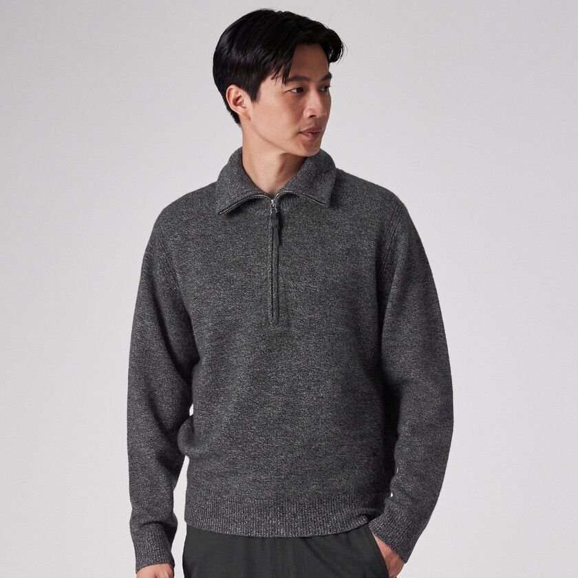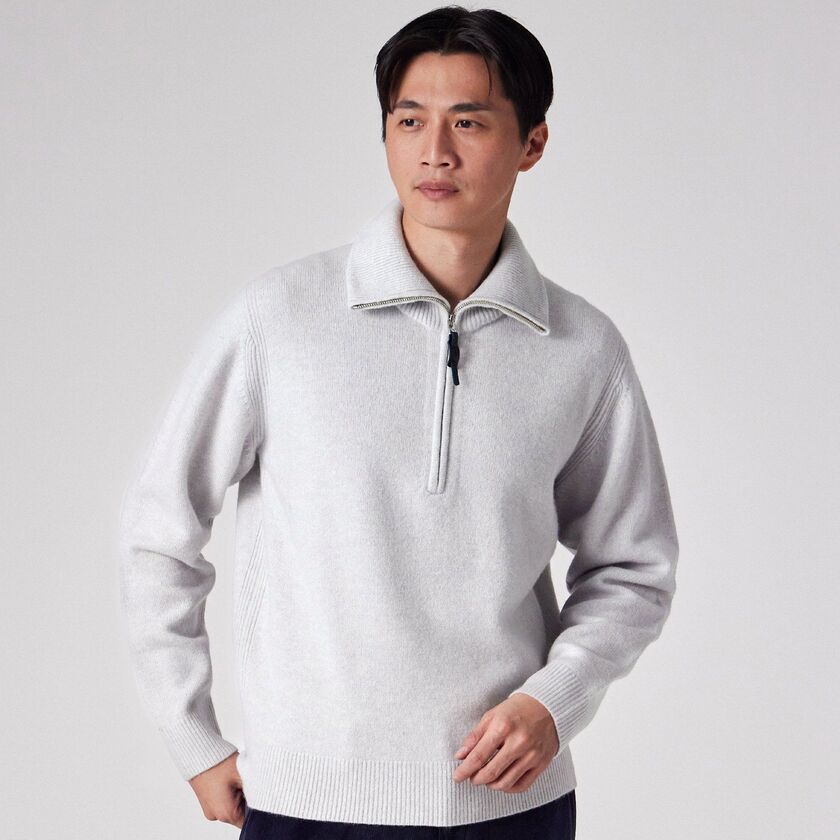 Tシャツの上にさらりと着るだけで、リラックス感がありながらも決してラフになりすぎない、品のある休日スタイルが完成します。シャツと重ね着してジップから襟を覗かせれば、ゴルフやオフィスカジュアルなどの少しきれいめなシーンにも対応可能。ジャケットやコートのインナーとしても着膨れせず、秋冬のワードローブの核となる万能な一着です。