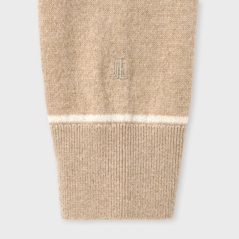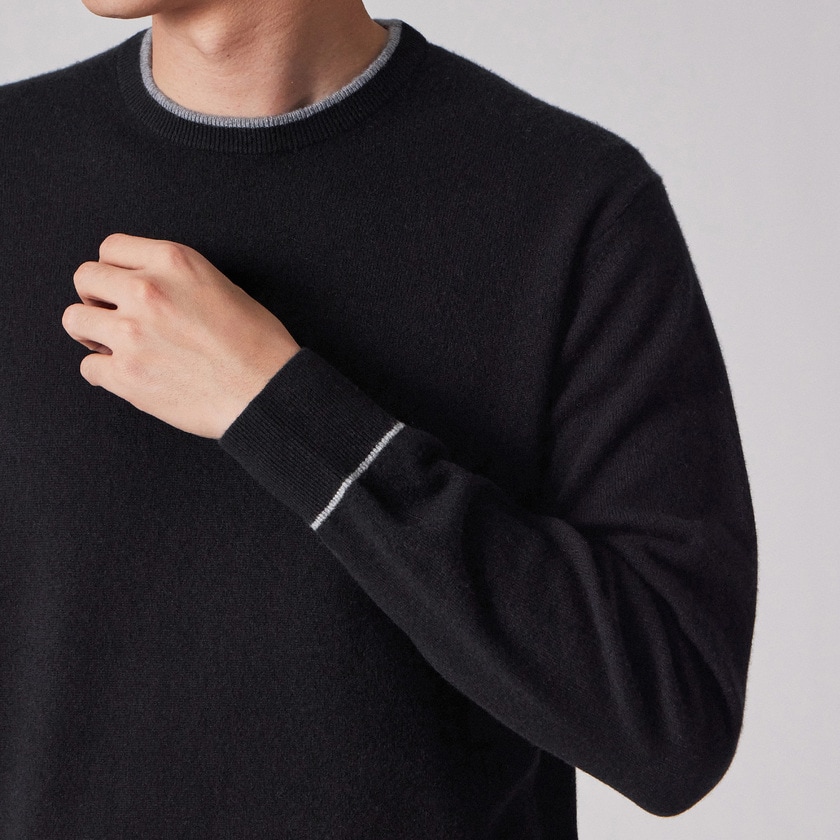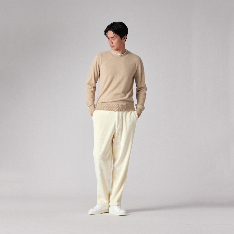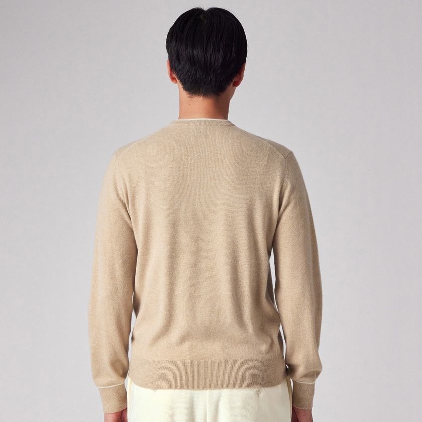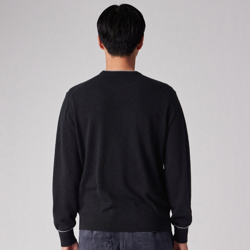 カシミヤ100%ならではの優れた保温性を持ち、冬の寒さから身体を優しく守ります。一枚でも十分に暖かく、またジャケットやコートのインナーとしても着膨れしにくい絶妙な厚みです。首元と袖口のアクセントが効いているため、テクニックいらずでコーディネートが決まり、スタイリングの悩みを解消する実用性も兼ね備えています。