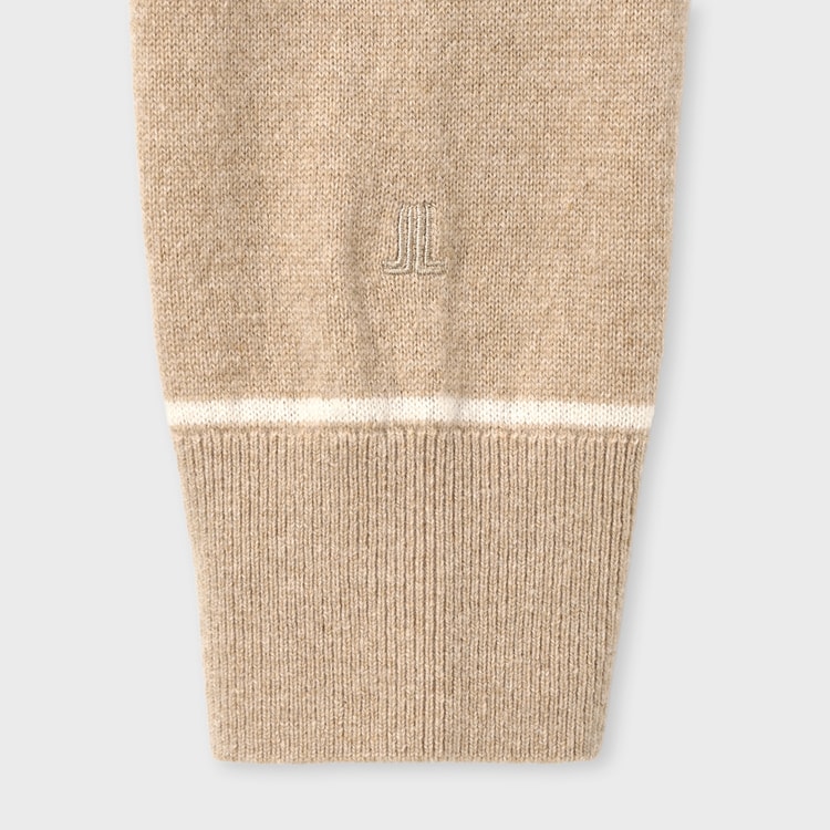 ハイネックのフルジップデザインをベースに、ディテールでモダンな印象をプラスしたカーディガンです。水平に配置されたアウトポケットは、口部分にリブを効かせることでさりげないアクセントに。また、袖口リブの上部に施された配色のラインが、スポーティかつ洗練された雰囲気を演出しています。左袖口にはブランドの証である「WJL」の刺繍入りです。