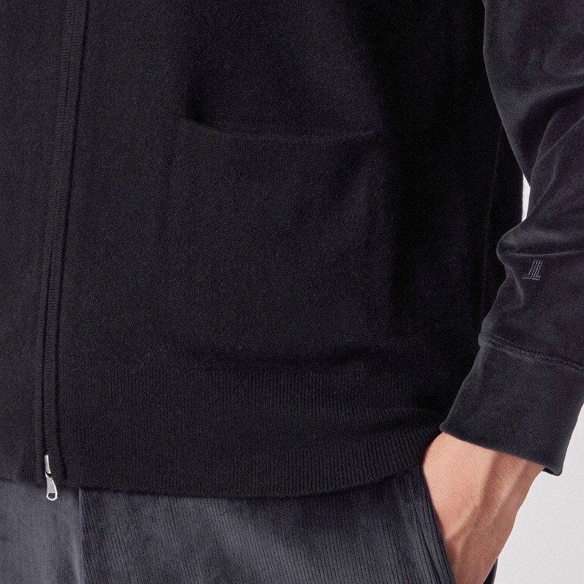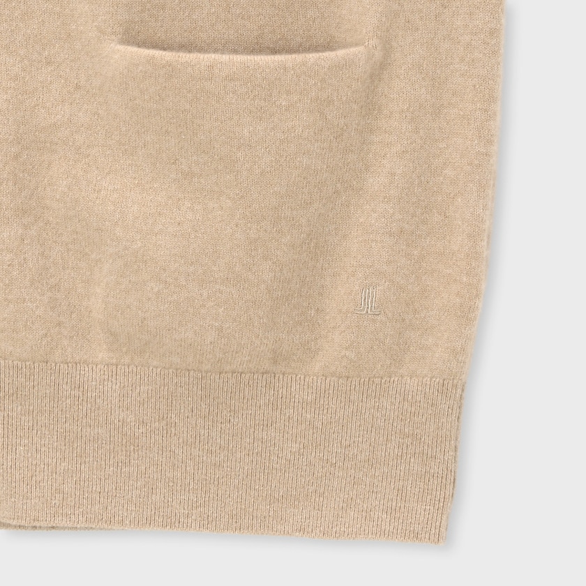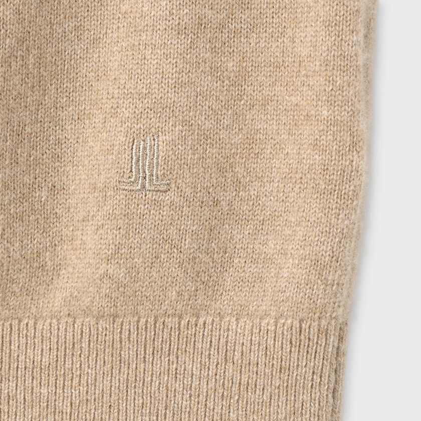 15.3μm〜15.8μmという極めて繊細な「高級ホワイトカシミヤ」原料を贅沢に使用しています。特筆すべきは、縮絨加工で度目(編み目の密度)を詰めている点です。これにより、カシミヤ本来のシルクのような滑らかさと極上の柔らかさを持ちながらも、ニット特有の頼りなさを解消した、しっかりとしたハリと適度なボリューム感を実現しました。