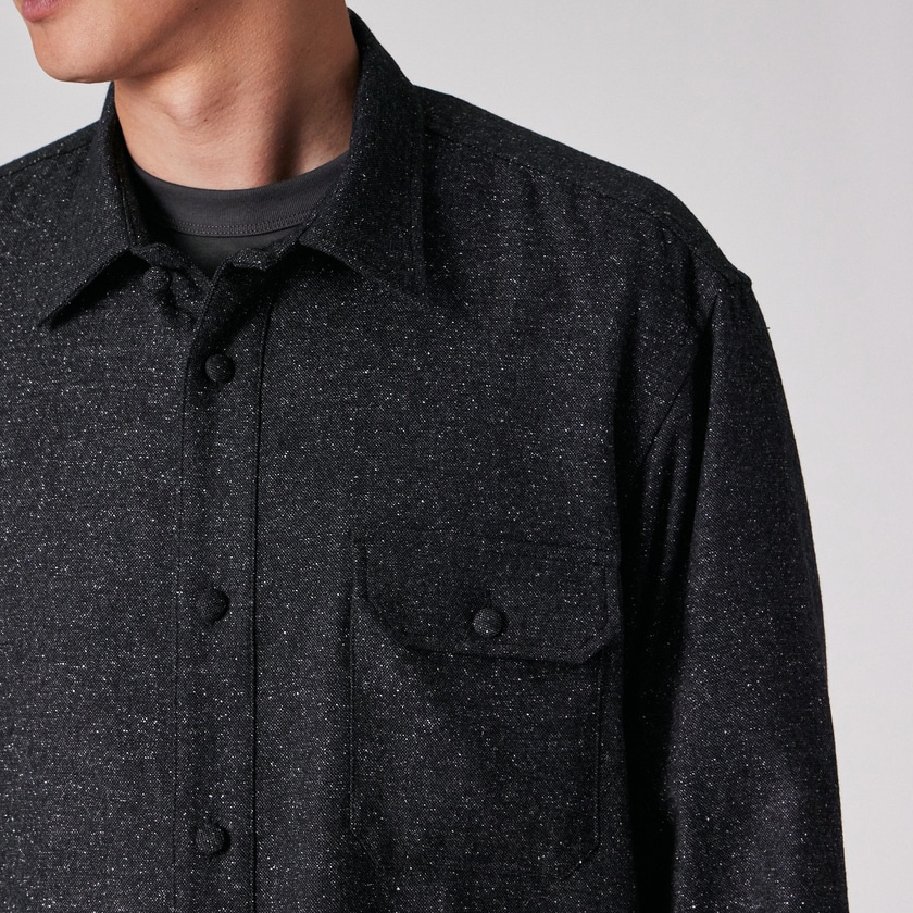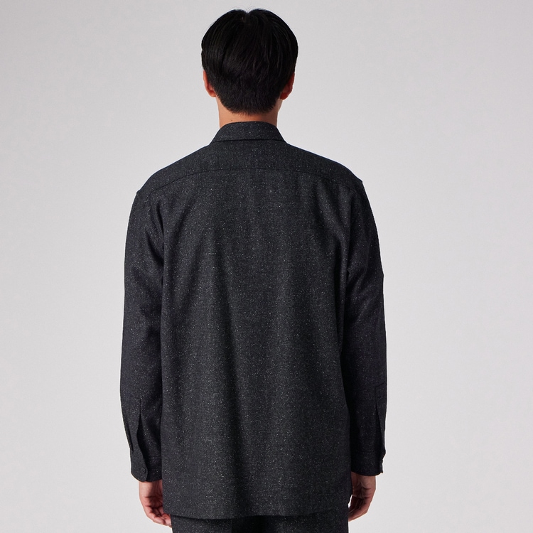 モデル【GARONNE/ガロンヌ】は、シャツでありながらブルゾンのような感覚で羽織れる、自然なフィッティングが魅力です。共生地で丁寧に作られた「足付きのくるみ釦(ボタン)」を採用することで、統一感と工芸品のような高級感を演出。細部までこだわり抜かれた丁寧な仕立てが、シンプルながらも上質な存在感を放ちます。