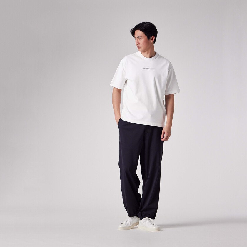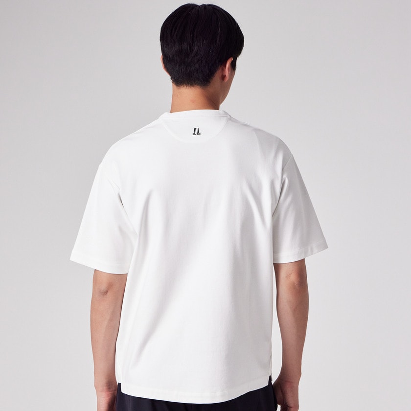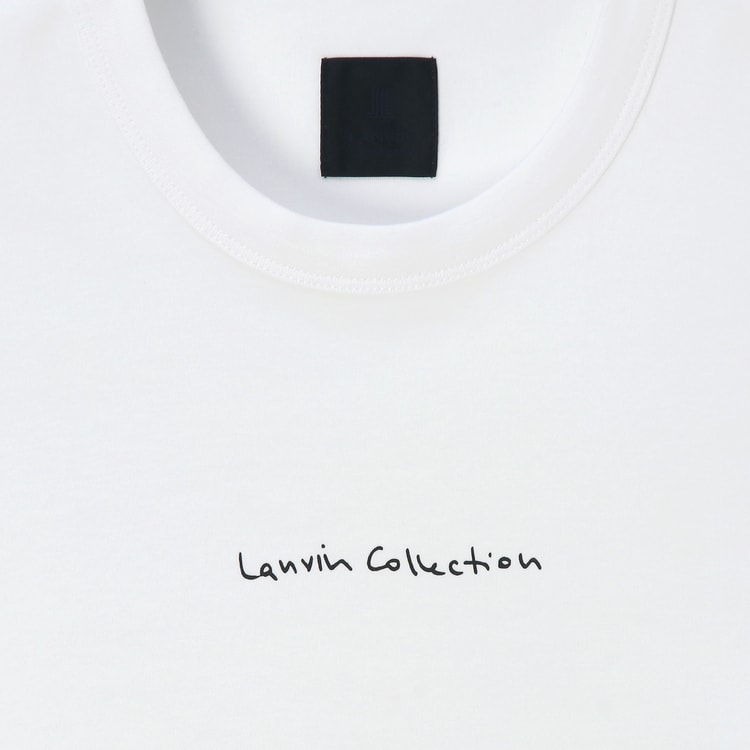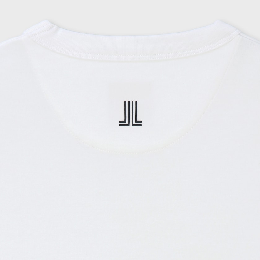 オンラインショップおよび表参道直営店のみで展開される限定モデルです。フロントには本国フランスから届いた、手書き風の繊細なロゴアートワークをプリント。背面ネック部分にはブランドの象徴である「JL」マークを配し、前後どちらから見ても洗練された印象を与えます。ボディは白(ホワイト)一色のみの潔い展開。裾にはサイドスリットを施し、前後差をつけることで、シンプルながらも立体感のあるモダンなシルエットに仕上げています。