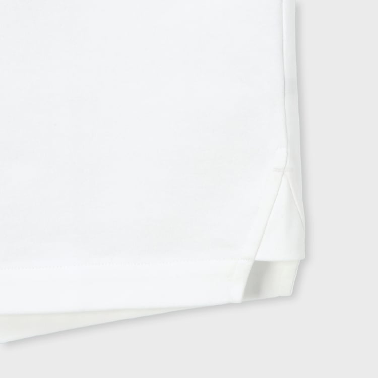 肌の上を滑るようなスムースな質感が、一日中快適な着心地をキープします。裾に入ったサイドスリットは、動きやすさを確保すると同時に、ボトムスのポケットへのアクセスもスムーズに。タックアウト(裾出し)して着用した際にも腰回りがもたつかず、計算されたバランスでスタイルよく見せてくれます。