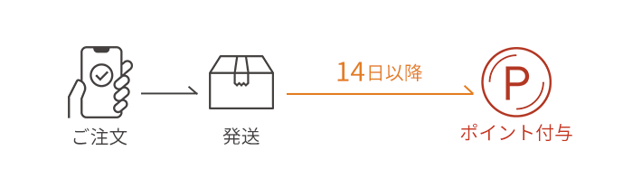 ポイントは、ご注文商品の発送日から14日以降(実店舗の場合は購入日)に加算されます。