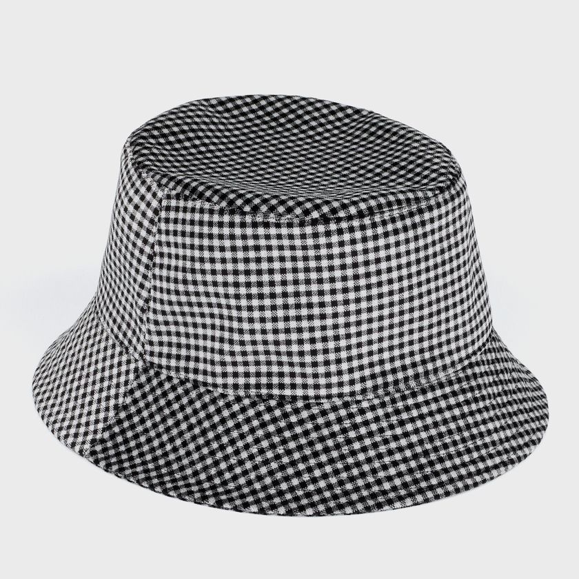 ギンガムチェックのハットは同じ素材のジャケット、スラックスと是非合わせてください。