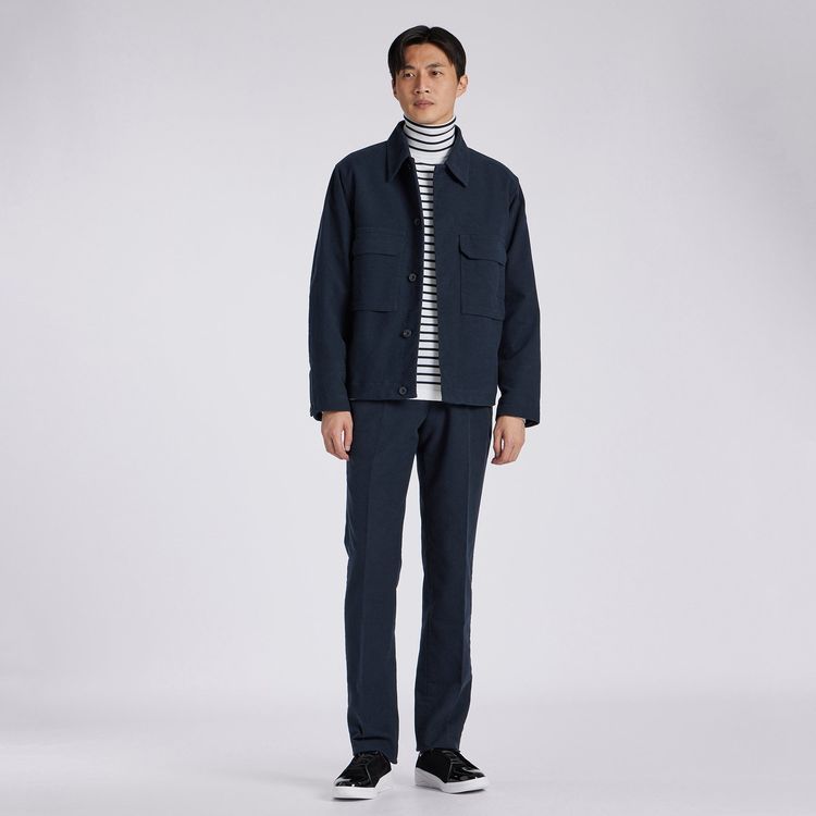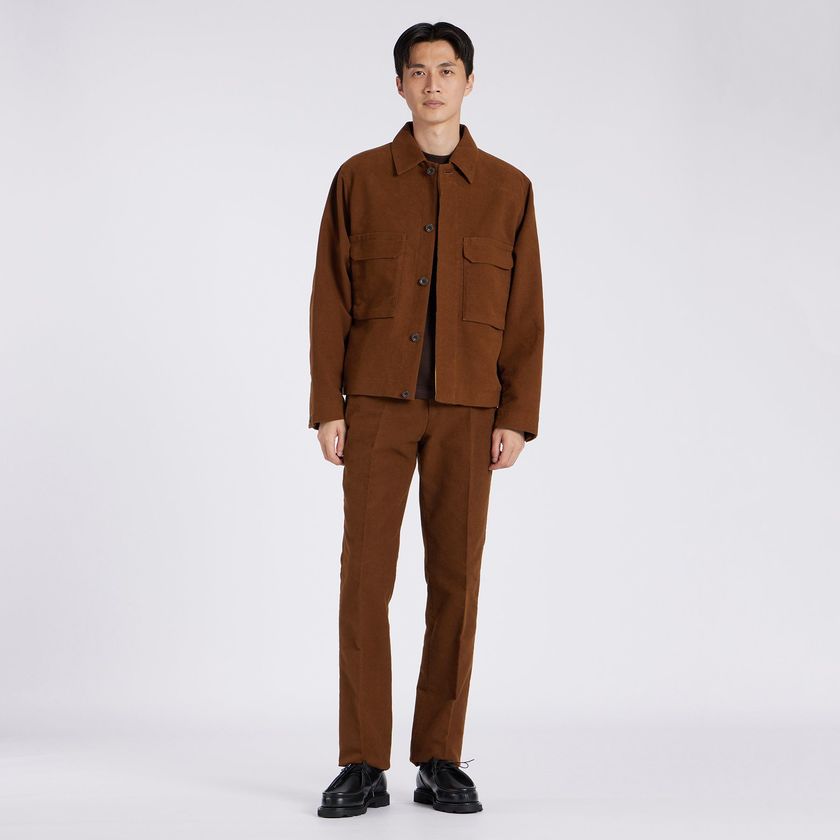 高級感あるモールスキンは、同素材のテーパードスラックスとのセットアップがおススメ。